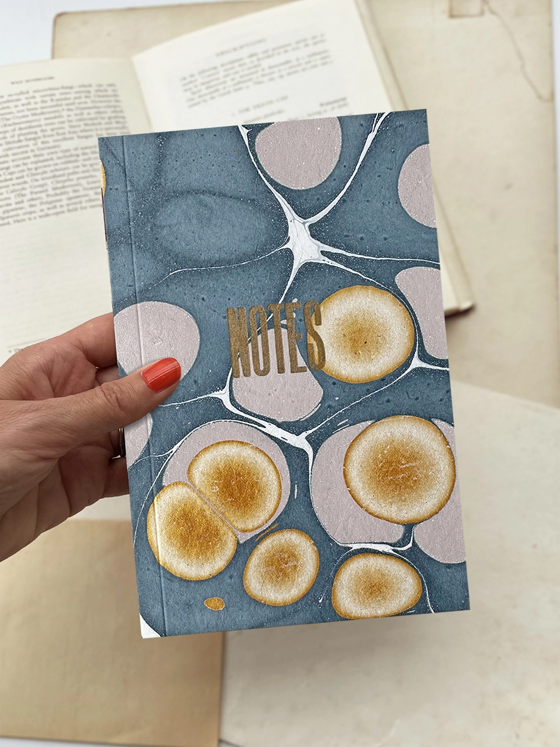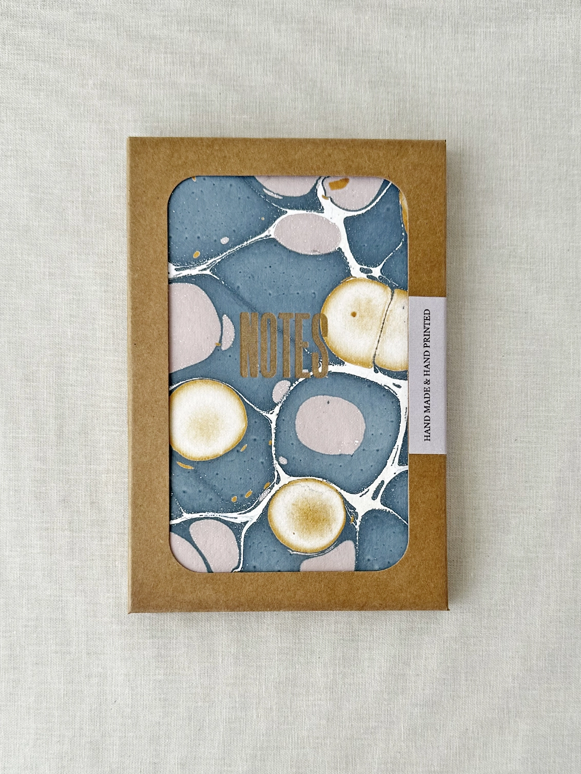 Letterpress printed notebook with an original hand marbled cover on thick handmade paper - each book is unique.