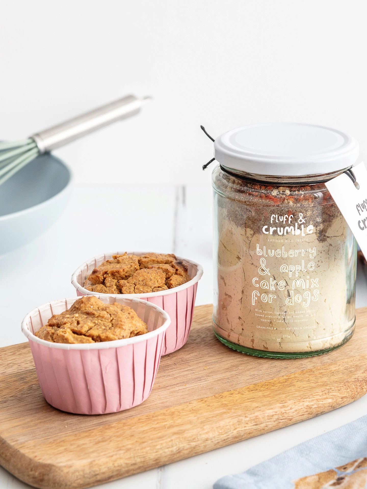 Bake a celebration your dog can enjoy with our Blueberry and Apple Cake and Cupcake Mix. Ideal for birthdays, gotcha days or a weekend treat, this vegan-friendly blend combines chickpea flour, peanut powder and dried fruit for a naturally sweet and nourishing bake.