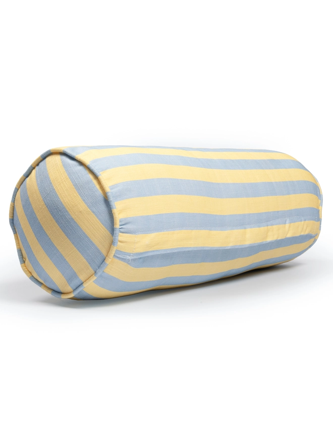 This fabulous bolster cushion is handmade from our striped linen ‘Trianon.’ Designed by Poppy and Honesty this luxurious velvet features stripes in regal navy and sky blue. We think it co-ordinates rather beautifully with other pieces from our collection...