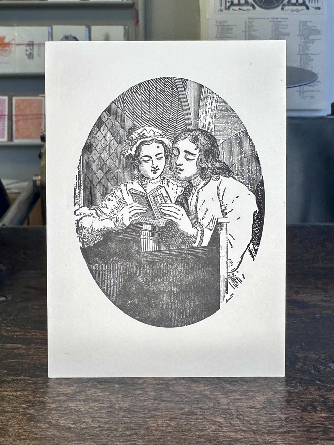 Blank inside. Letterpress card printed in small batches on an antique press using ecologically sound paper, milled in the UK. A6 350gsm card (10.5 x 14.8cm) with brown kraft envelope and recyclable cello.