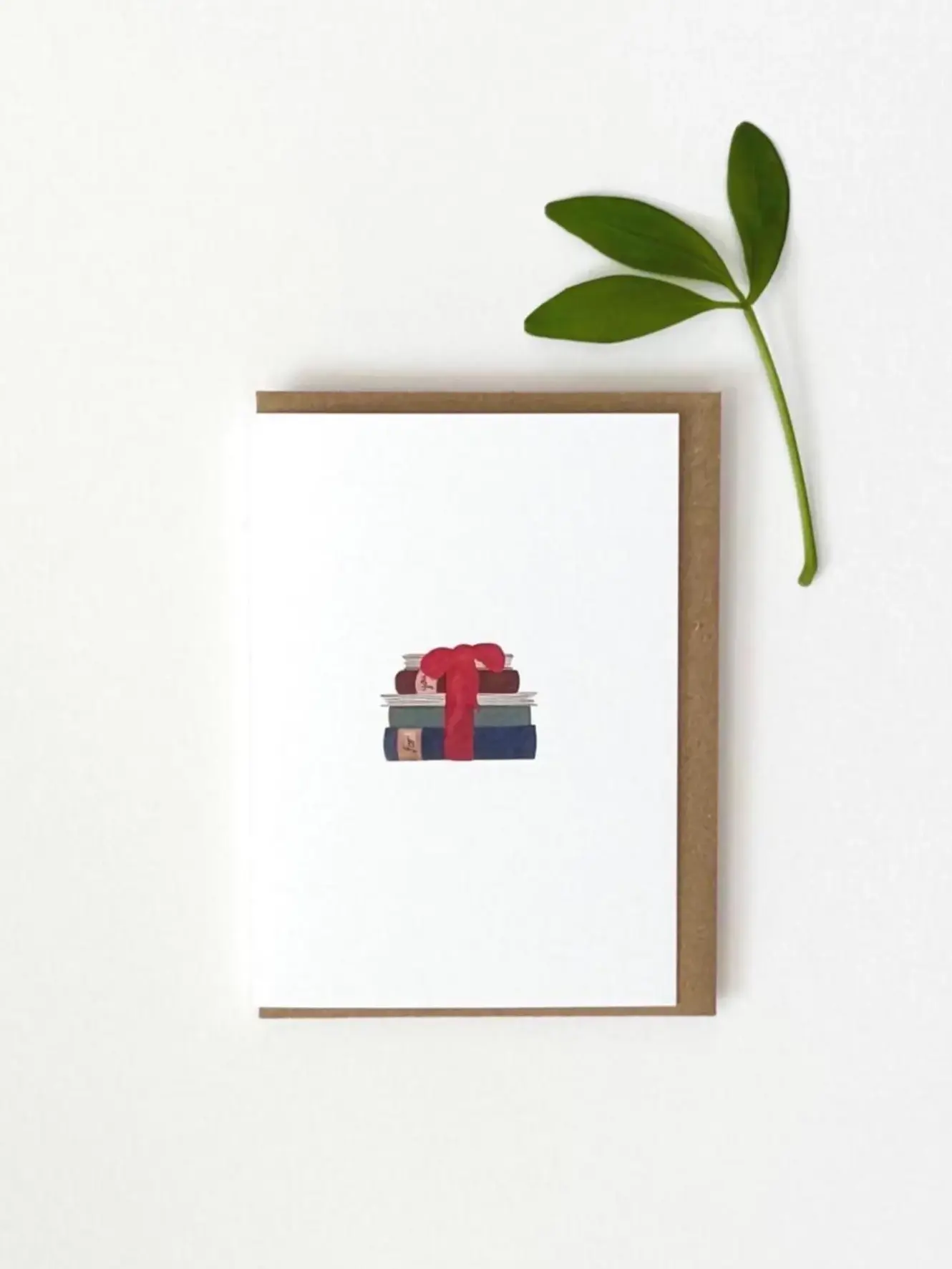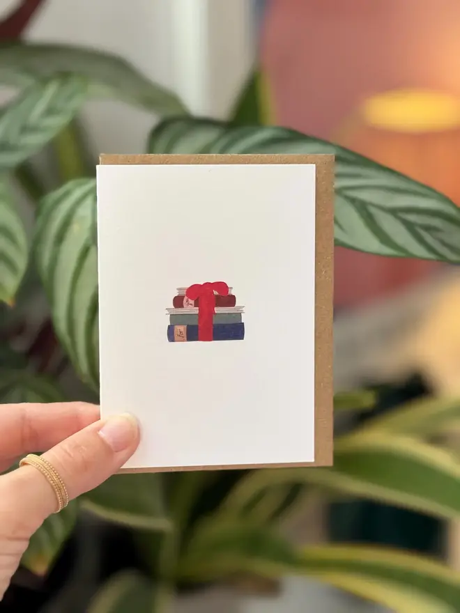 Books Wrapped In Red Ribbon Illustrated Mini Card