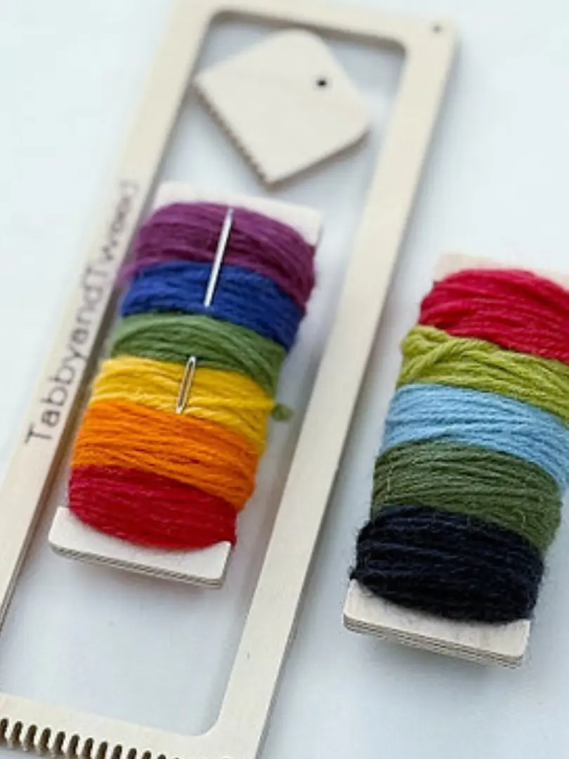 Learn to weave a bookmark using this weaving loom craft kit which includes bright yarn in rainbow colours. A perfect gift for someone who loves yarn crafts, knitting, crochet or sewing and would enjoy learning to weave gorgeous vibrant bookmarks. The kit comes in a gift box with full written instructions and there is also a video tutorial on our YouTube channel to support your journey into weaving. The instruction booklet shows you how to weave tabby, twill and houndstooth weaving designs.