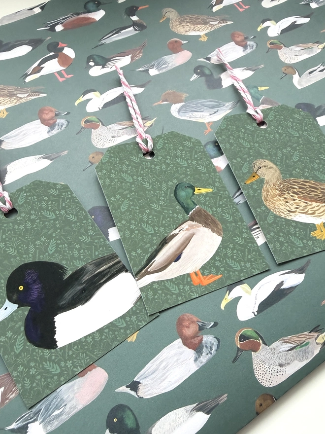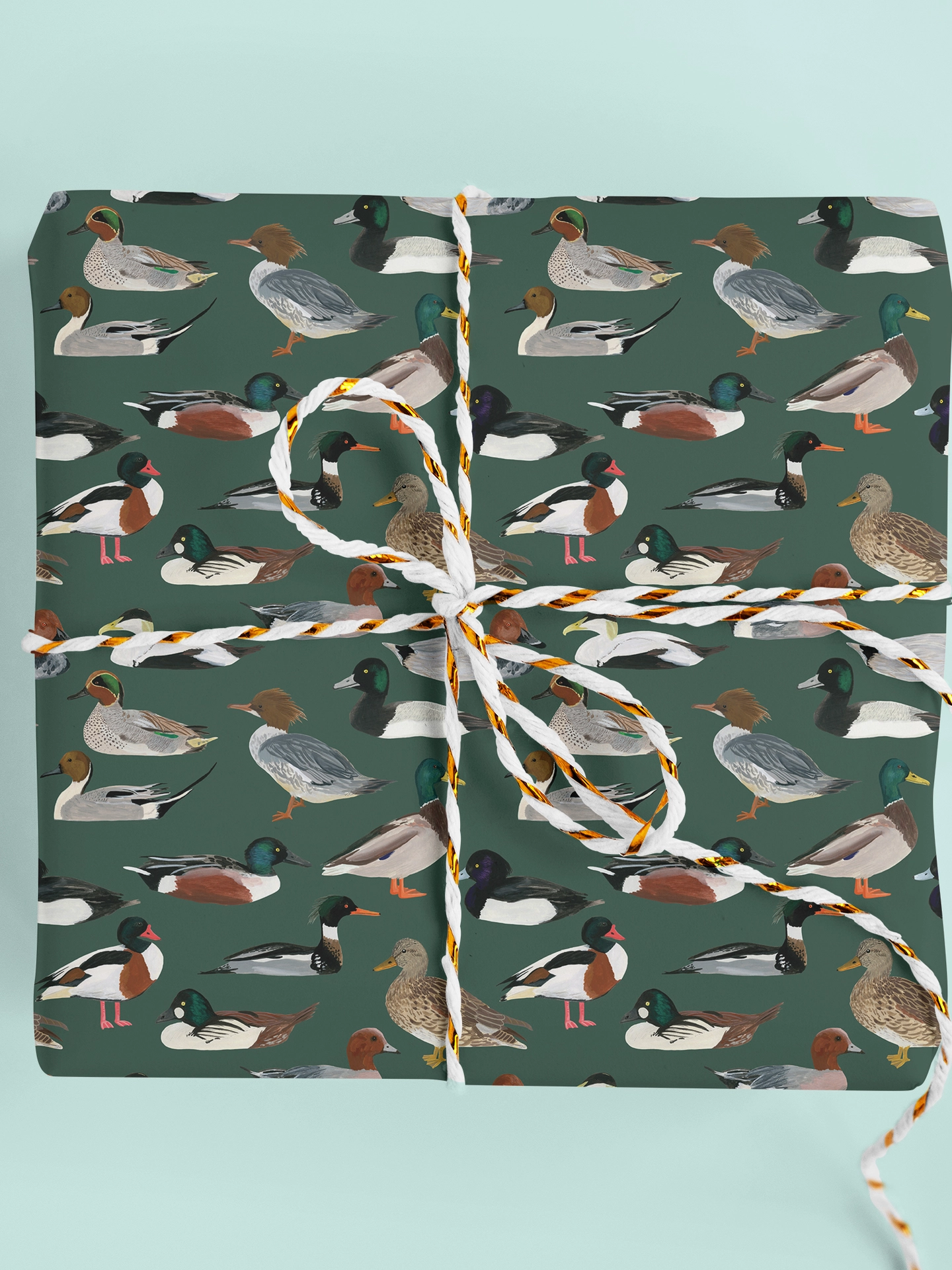 The perfect wrapping paper for all occasions, this gift wrap features my original gouache British duck illustrations on a lovely hunter's green background.