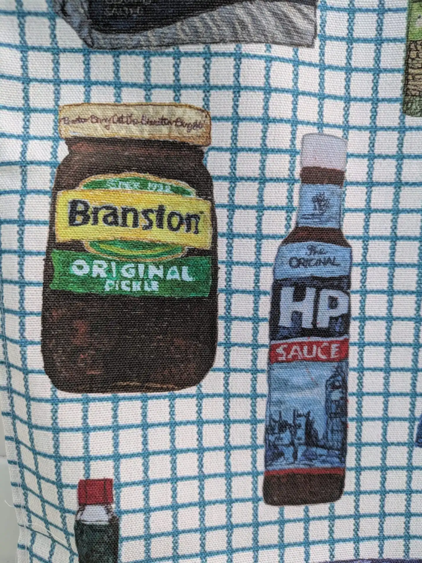Each food illustration started as an original free-motion embroidery, then was digitally printed in the UK to create a bright, detailed, and unique design.