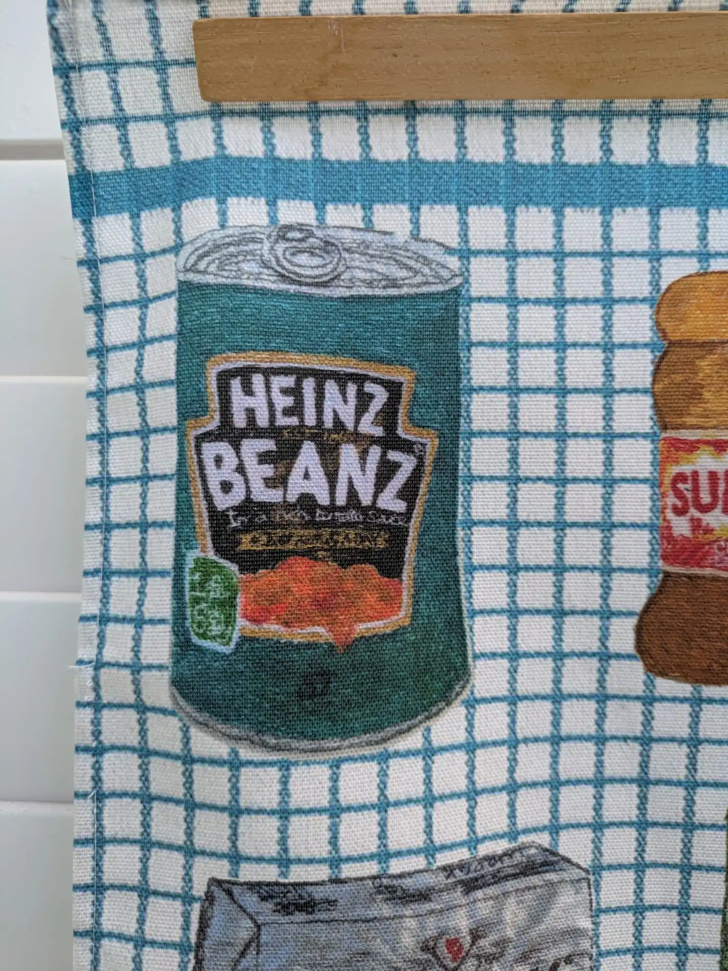 Bring a burst of colour to your kitchen with my British Storecupboard–themed tea towel!