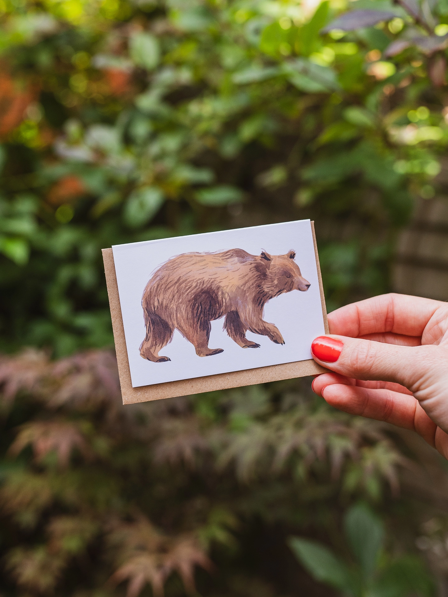 Share a touch of woodland charm with this mini card featuring a brown bear illustration. The original artwork was lovingly created by Kate Slater, using her signature handmade mixed media collage technique.