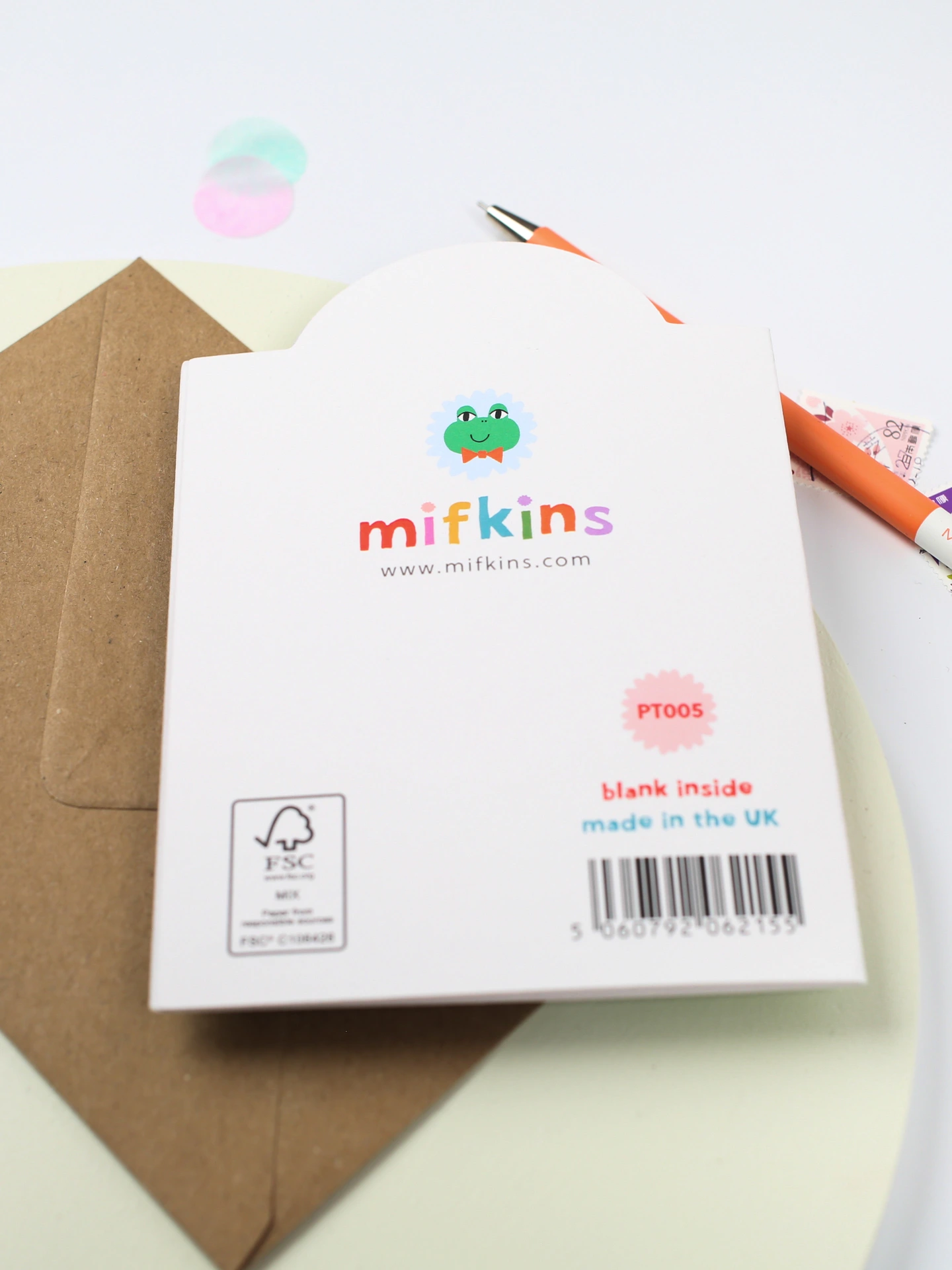 This children’s card is part of the Playtime Collection from Mifkins. This is just one of many designs from the Mifkins collections of beautiful greeting cards.