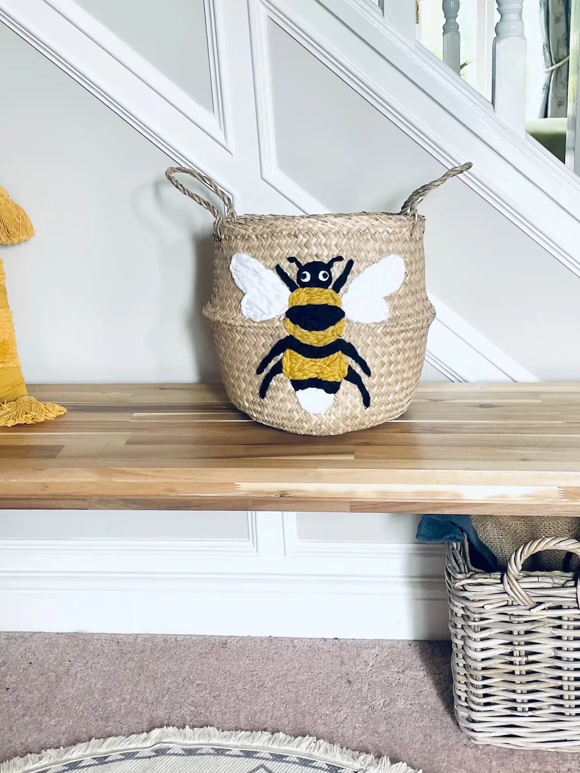 This cute bee design is the perfect accessory for your home. Hand embroidered using the softest wool, our bumblebee basket adds a splash of colour with its striking yellow and black design. Fill with your favourite things and smile.