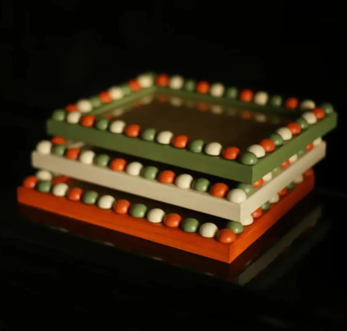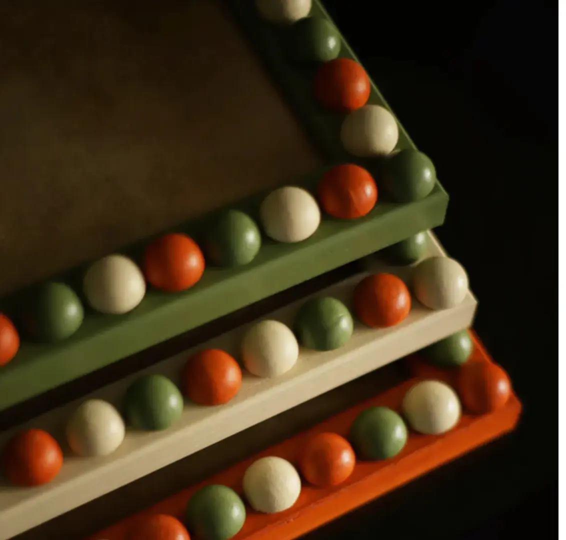 A unique collection of handmade bobbin frames inspired by the chic mediterranean colours of Poppy's summer holiday-in-Barcelona fan.