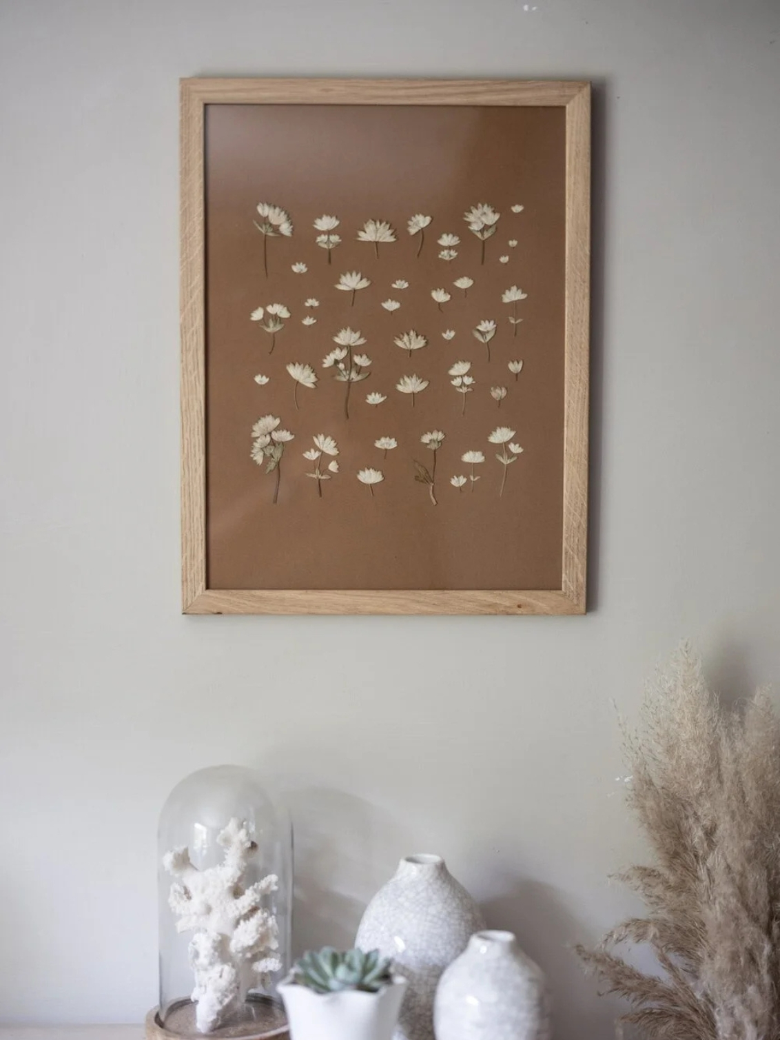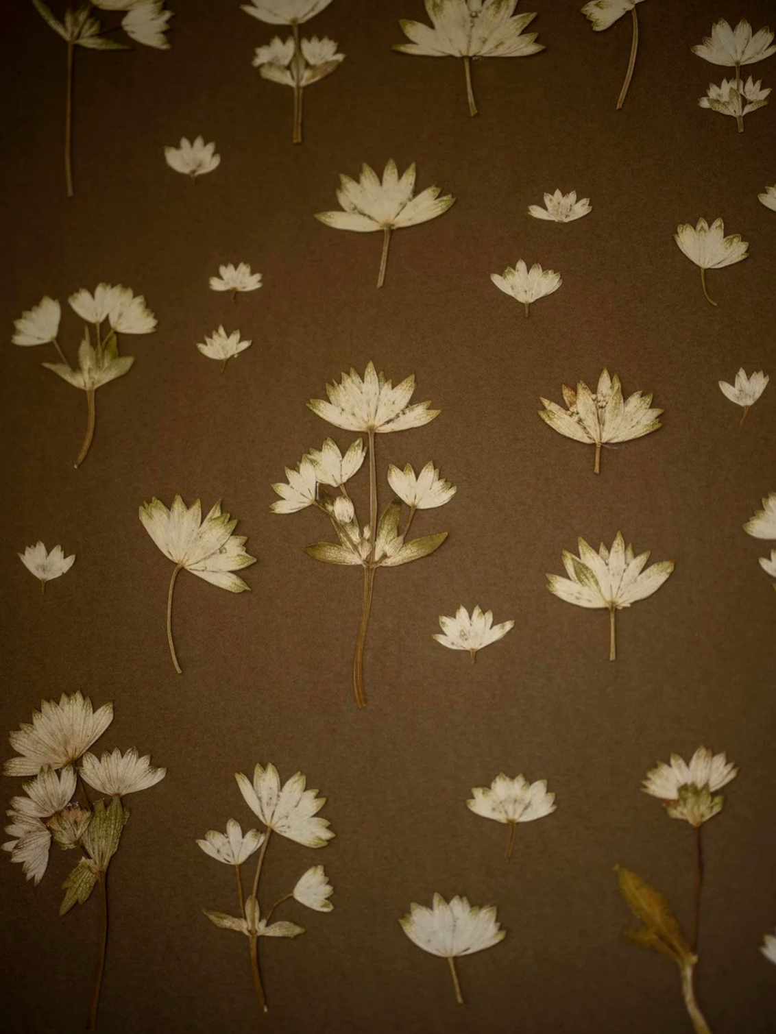 Featuring one of my favourite flowers to press, astrantia, this limited edition giclée art print puts this most versatile and pretty of flowers into the spotlight, their green-tiipped white petals contrasting beautifully with the original burnt sienna-hue...