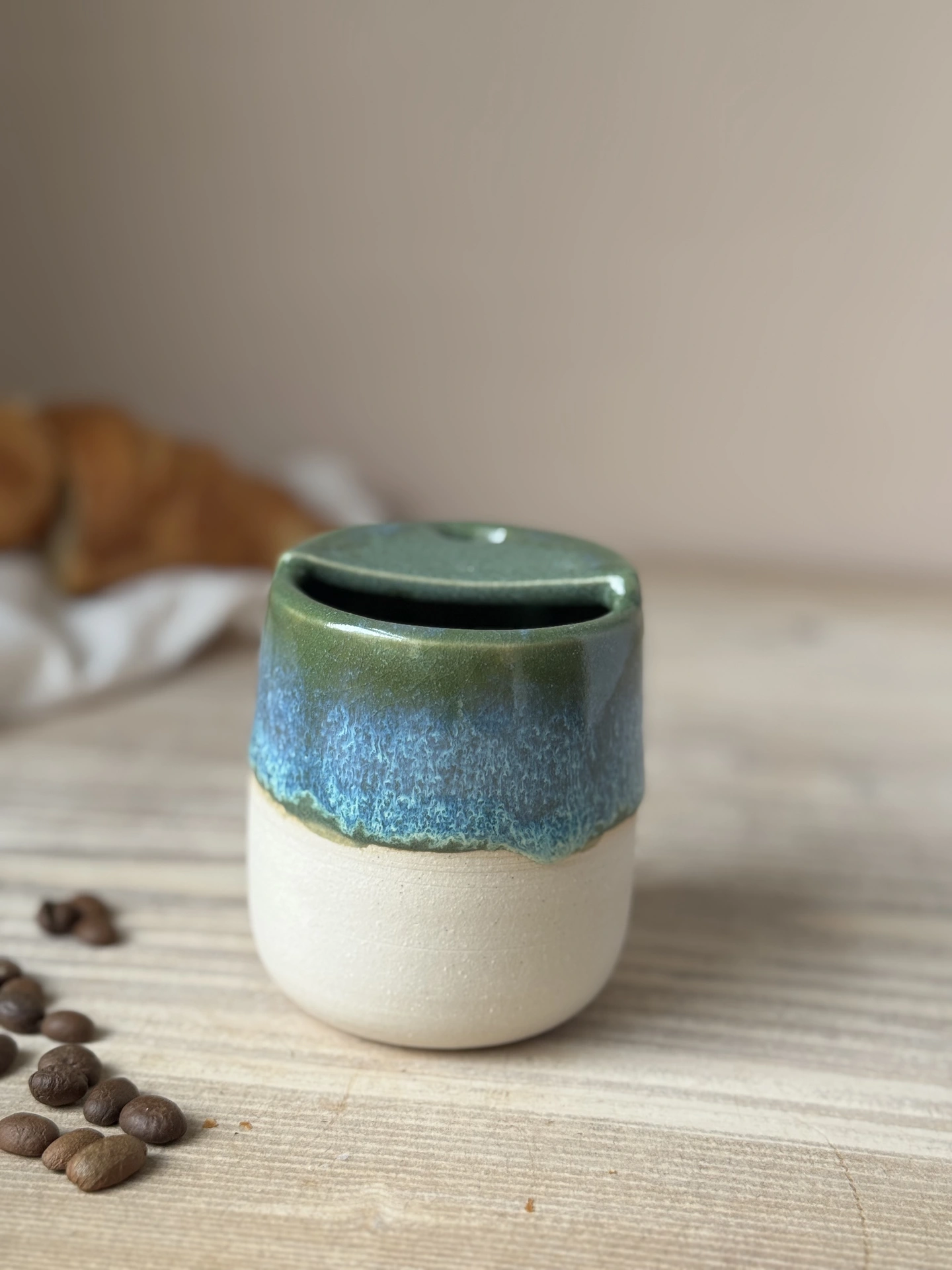 This listing is for a single handmade ceramic travel cup which is the perfect size for a flat white coffee.