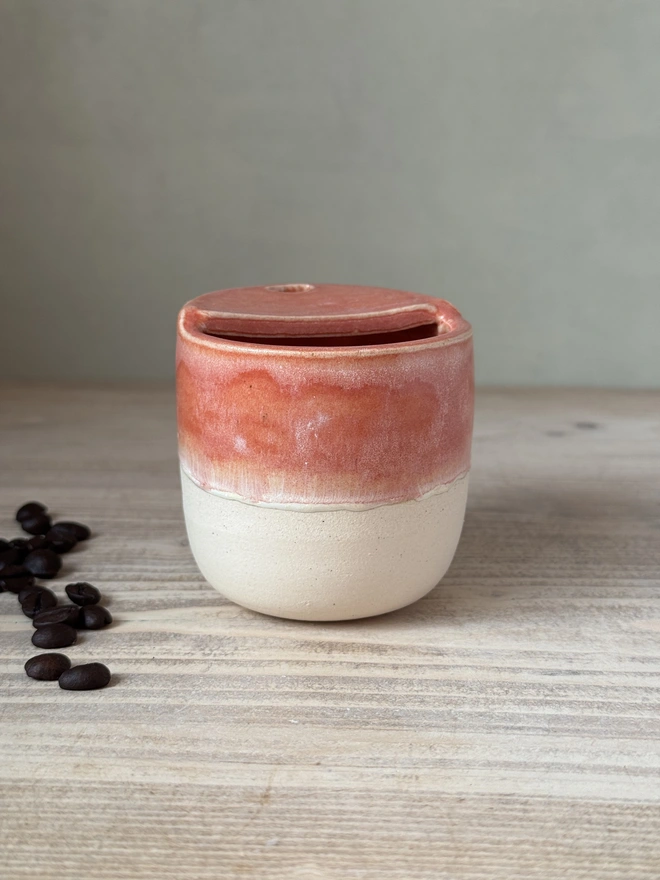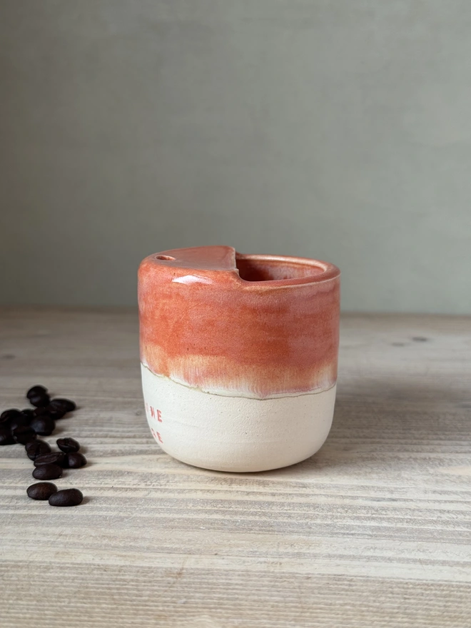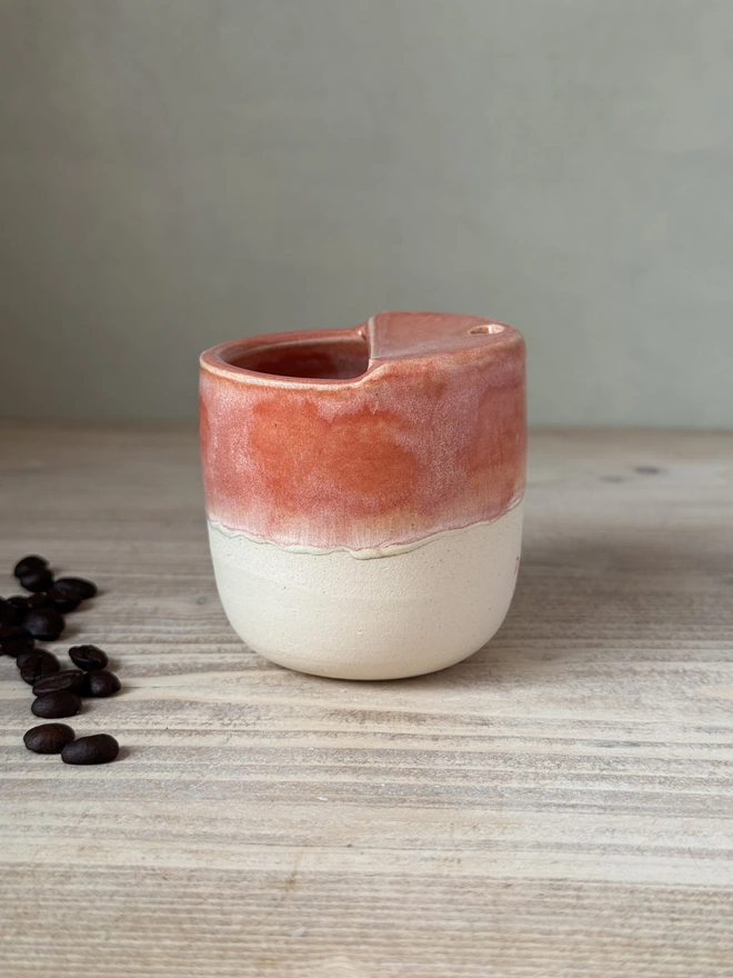 This listing is for a single handmade ceramic travel cup which is the perfect size for a flat white coffee.