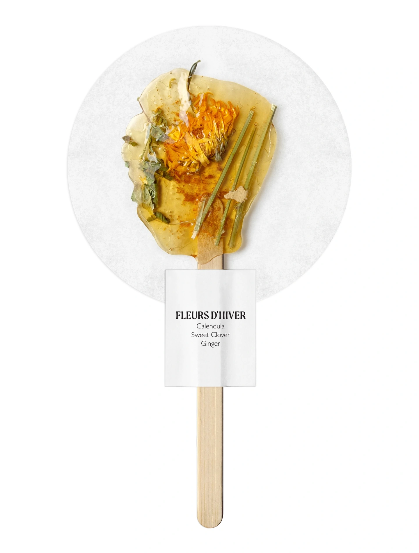 Each of the herbal teas are presented on a wooden stick, ready to be infused. The honey melts, the flowers infuse and bloom naturally in the hot water an image of beauty to accompany the taste for a moment of well-being.