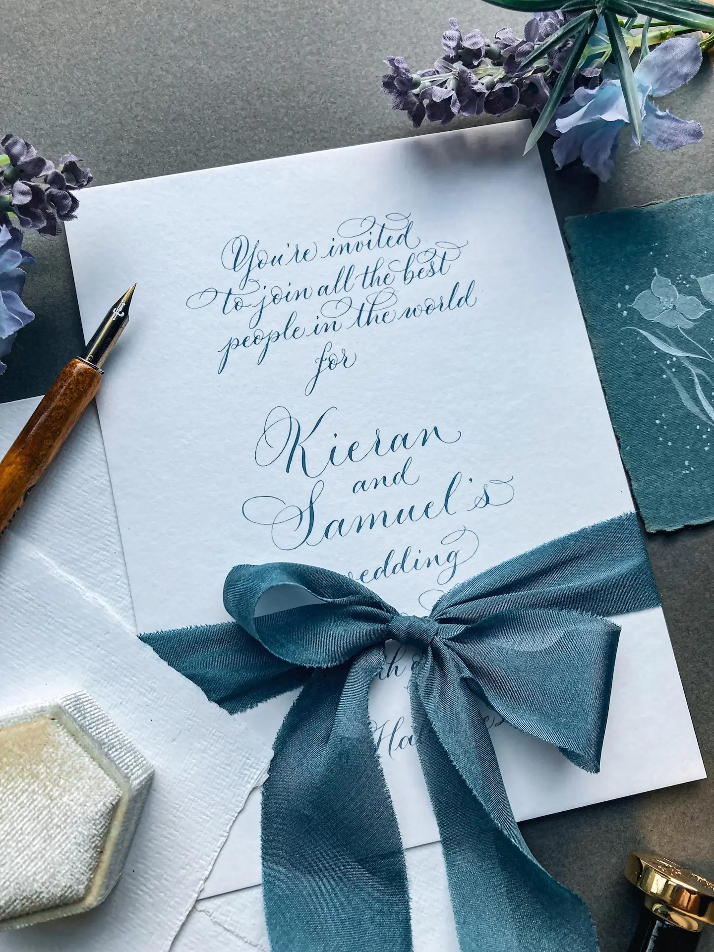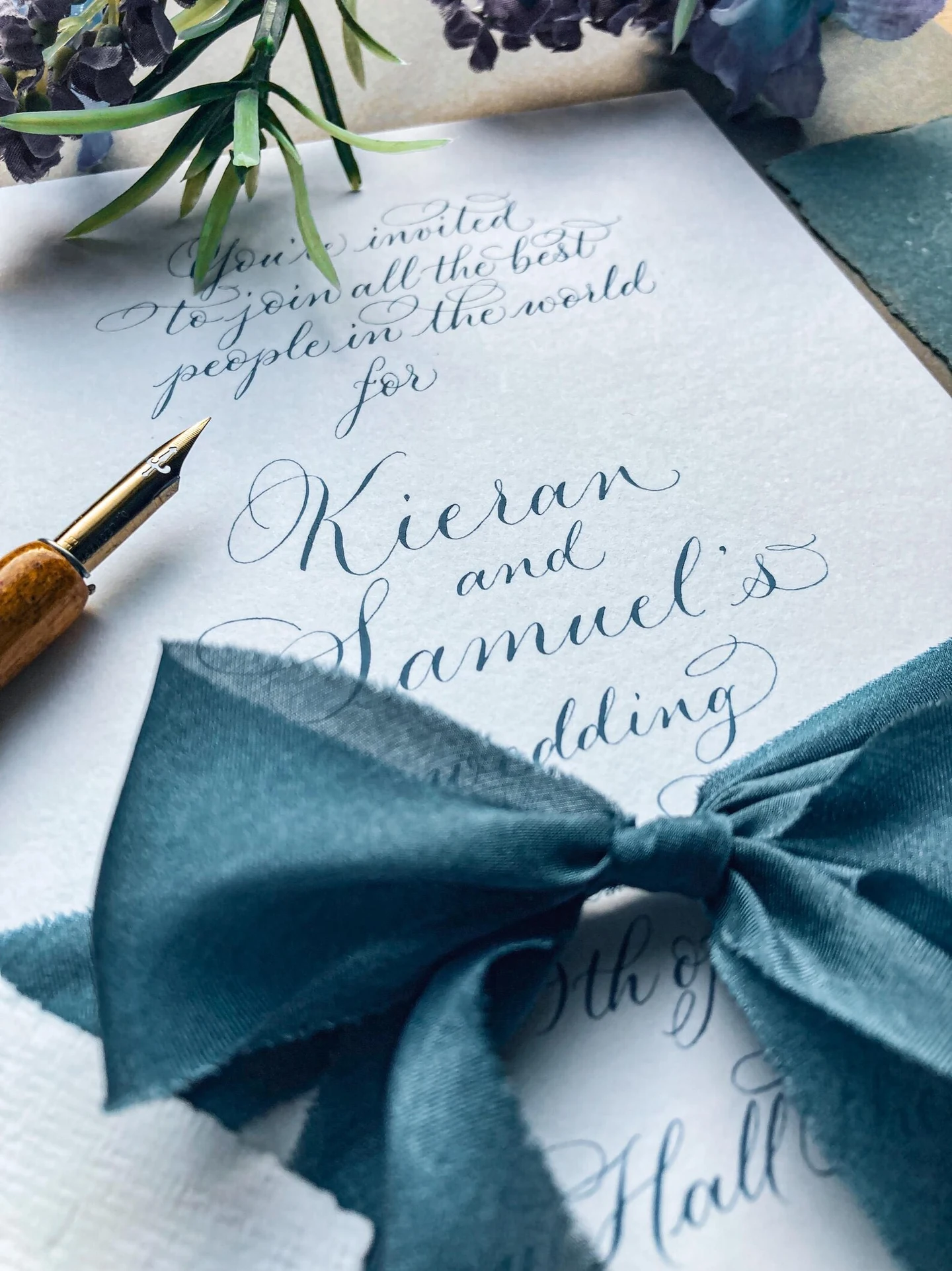 Beautifully handwritten calligraphy wedding invitations to set the scene for a unique and personal wedding!