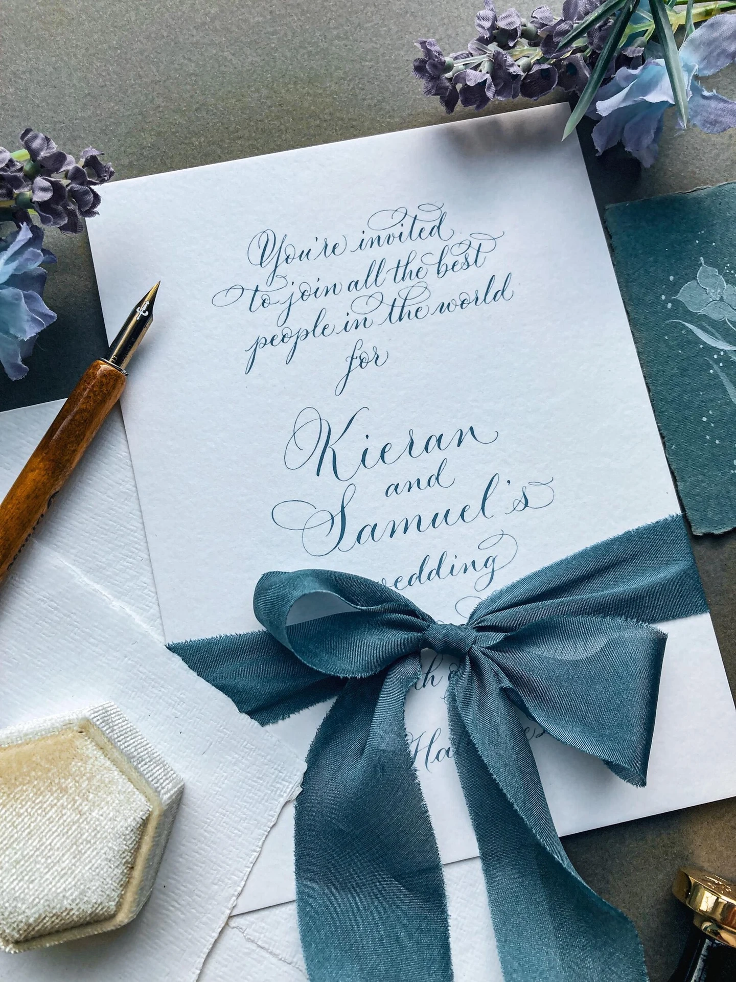 Beautifully handwritten calligraphy wedding invitations to set the scene for a unique and personal wedding!...
