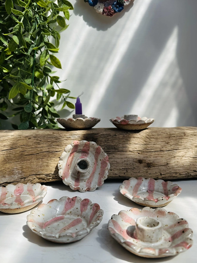 Introducing our handcrafted candle holders. Each piece is lovingly made by hand, ensuring no two pieces alike, the individual candle holders add a warm, luxurious glow to any setting. The soft pastel stripes bring a playful yet elegant feel...