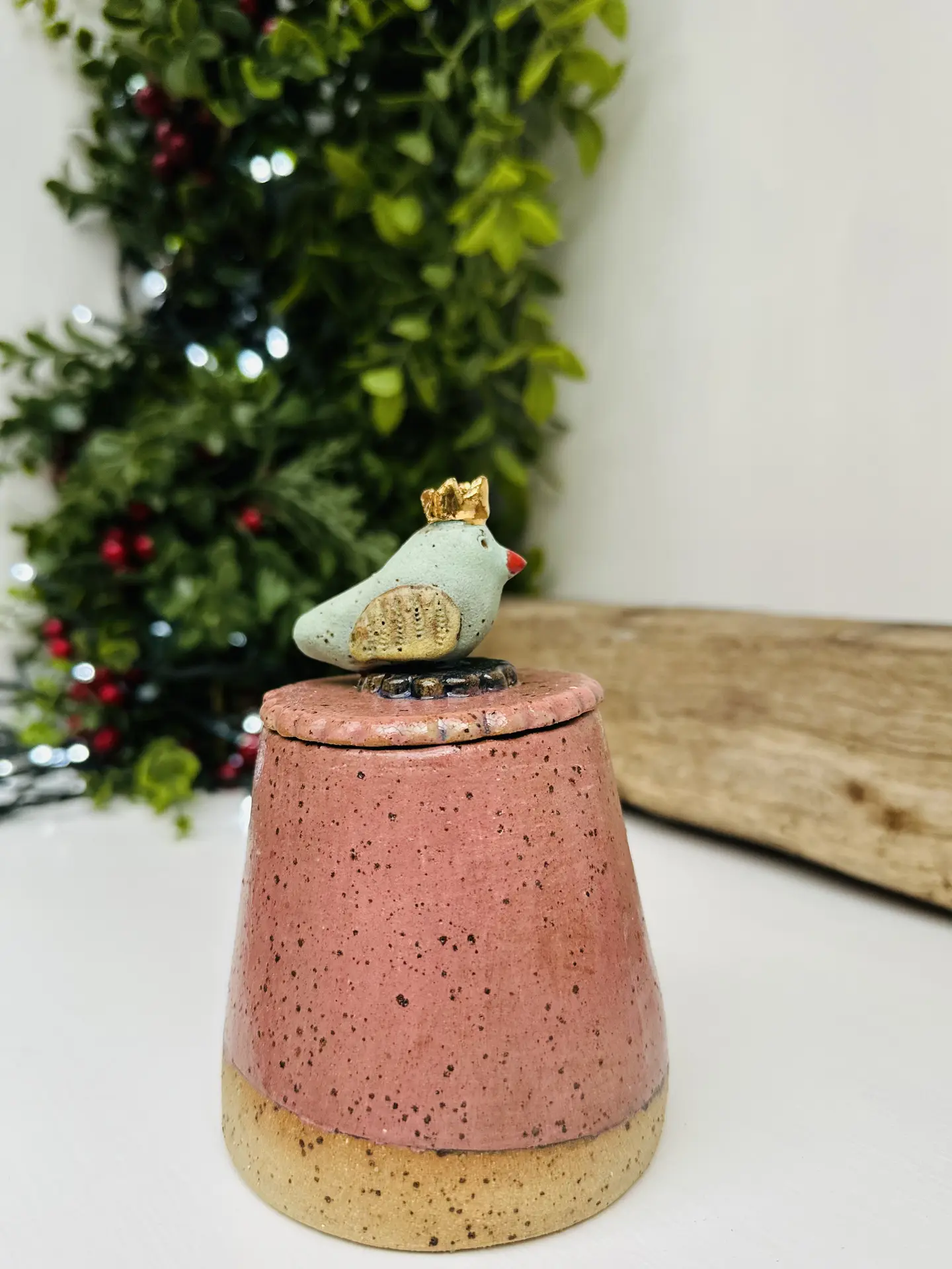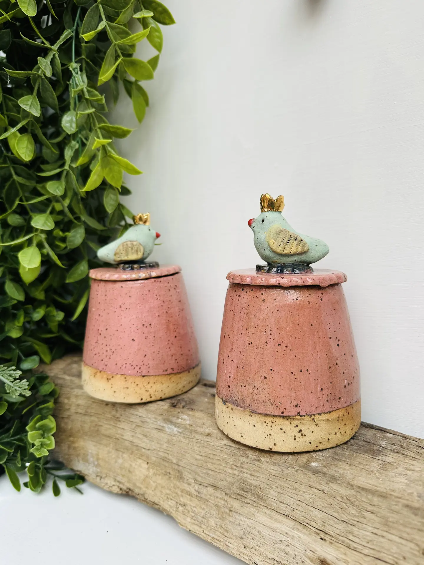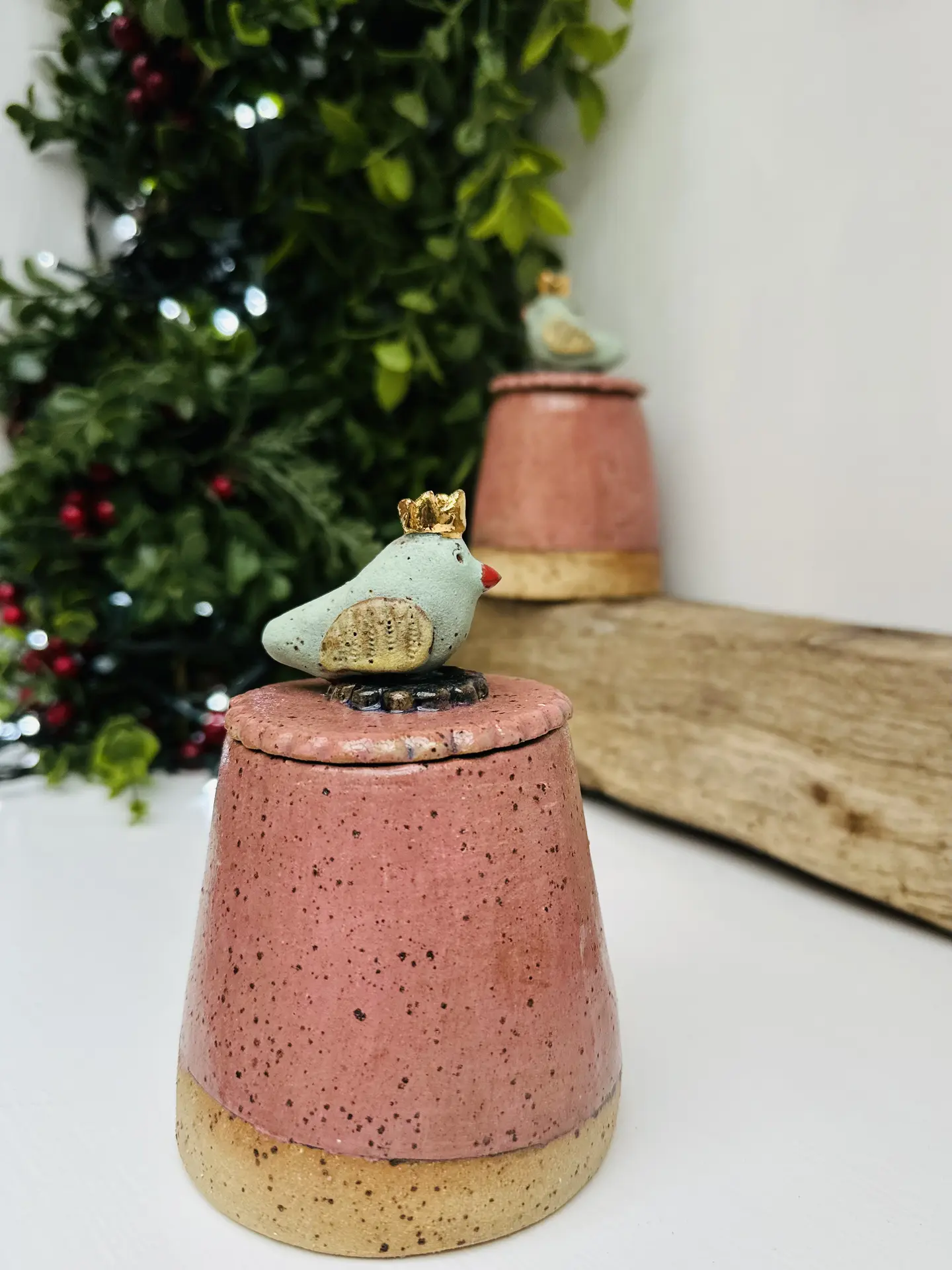 Discover our handcrafted ceramic storage pots, designed to bring both elegance and charm to your space. Each piece is hand shaped and features a delicate candy stripe pattern, complemented by stunning gold lustre detail. The lidded storage pots are perfect for keeping your small treasures or everyday essentials beautifully organised.
