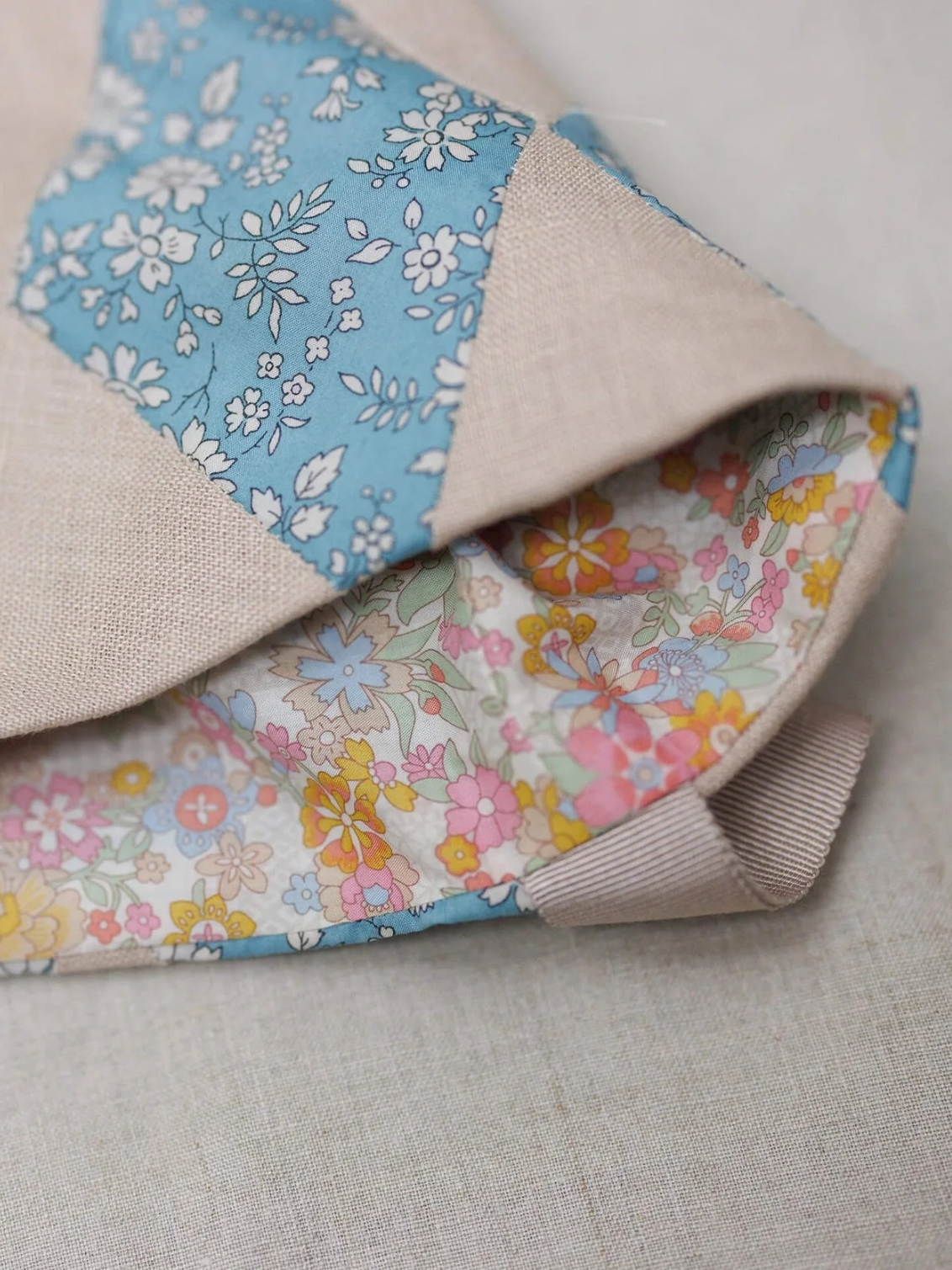 Crafted by hand in palest cloud pink linen and turquoise Liberty Tana Lawn and lined with contrasting Liberty cotton, this traditional Christmas stocking is made in small numbers in my East Sussex studio.
