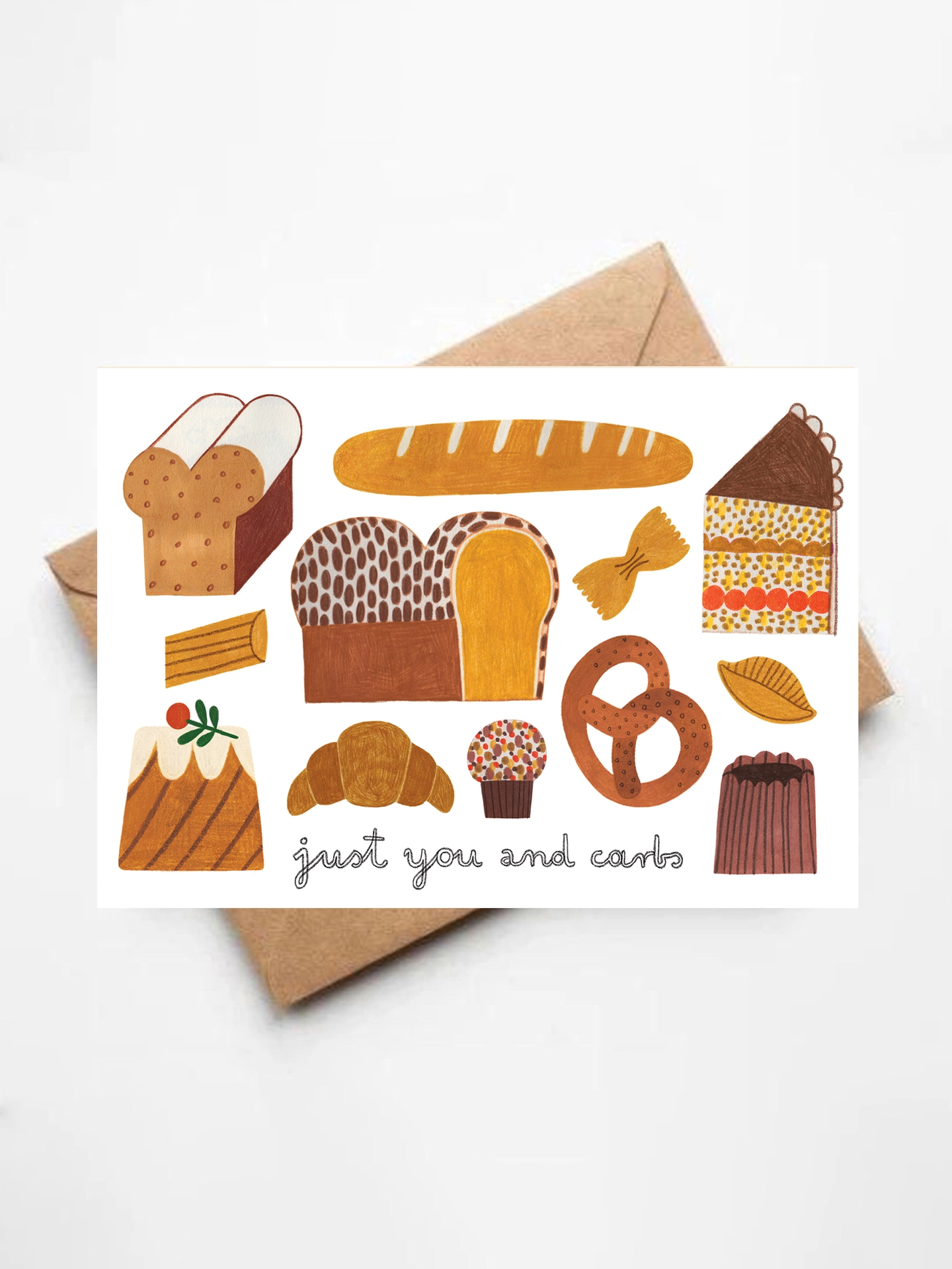 Folded greeting card with hand-illustrated image