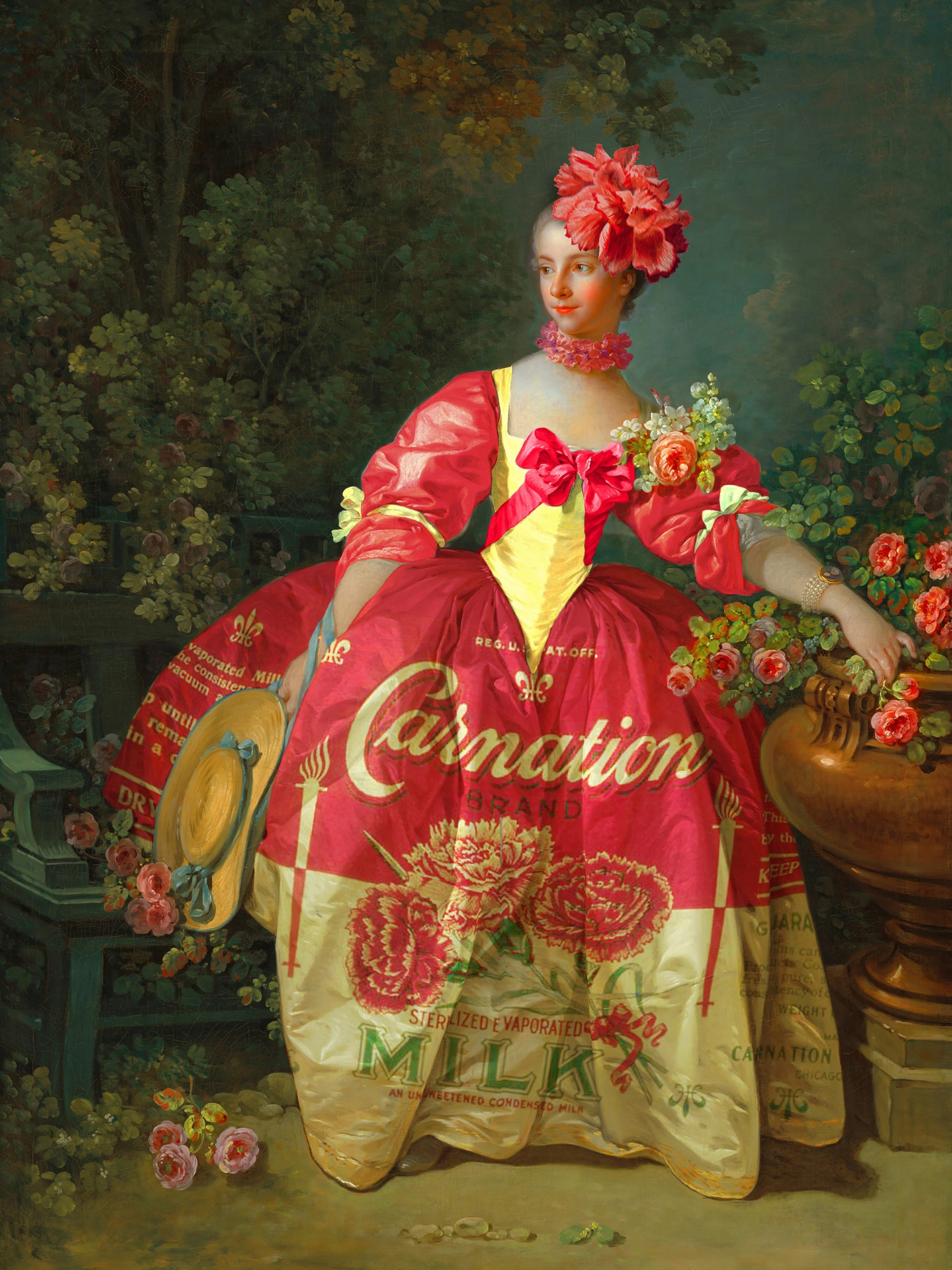 Part of a large ongoing series of works called The Product Placement Project. Humorous & fun Pop-Surrealist work exploring the connections and boundaries between art and advertising and a reflection on the functions of fashion & clothing