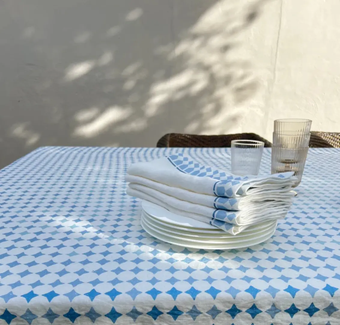 The inspiration for this collection was born from a deep desire to preserve my traditions and to create new ones, inevitably I looked back at homes strongly rooted by time and family stories. These homes and the tiles in their welcoming foyers inspired Casa Azul. Ideal for dinner parties or family gatherings, these beautiful tablecloths will gather everyone around the table.