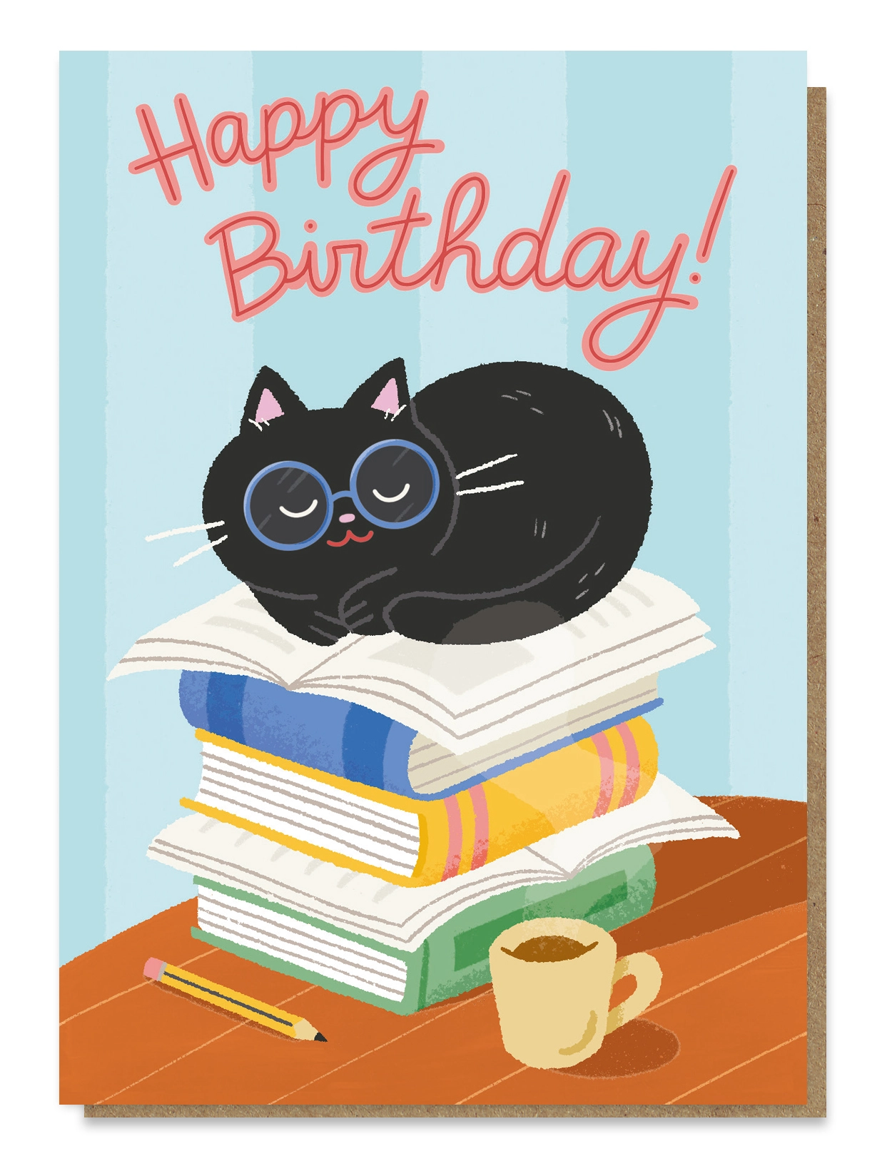 Cat & Books Birthday Card