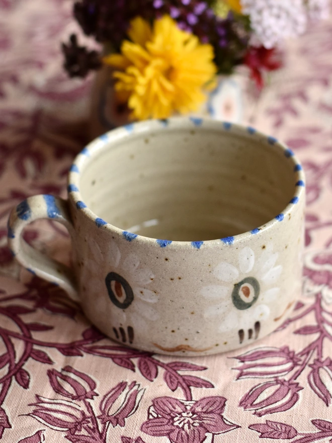 Ceramic Handmade 'Nessa' Mug - White Flowers