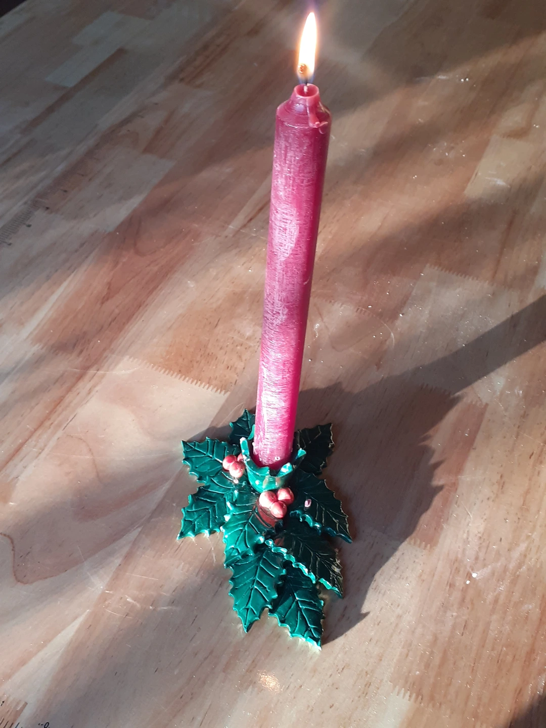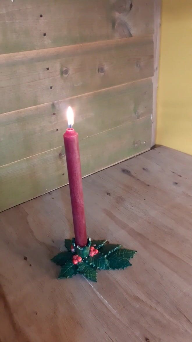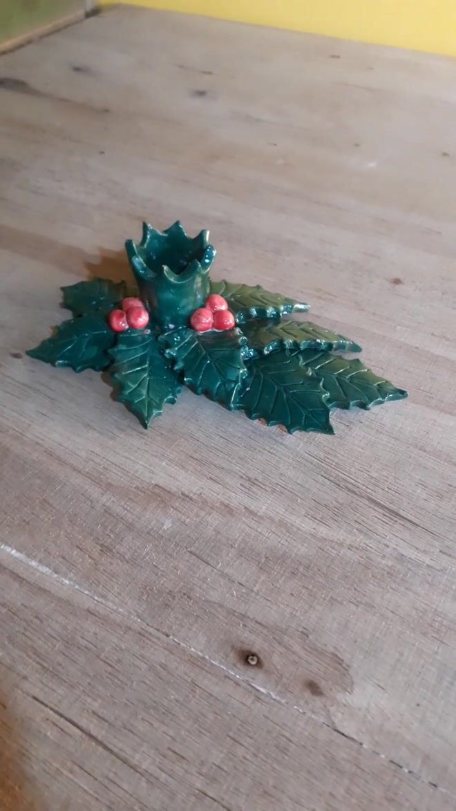 Bring a touch of timeless Christmas charm to your home with this handmade ceramic holly leaf candle holder. Carefully sculpted from earthenware clay and finished with a rich glossy glaze, each piece features layered holly leaves and clusters of bright red berries surrounding a scalloped candle cup — perfect for holding a standard dinner candle.