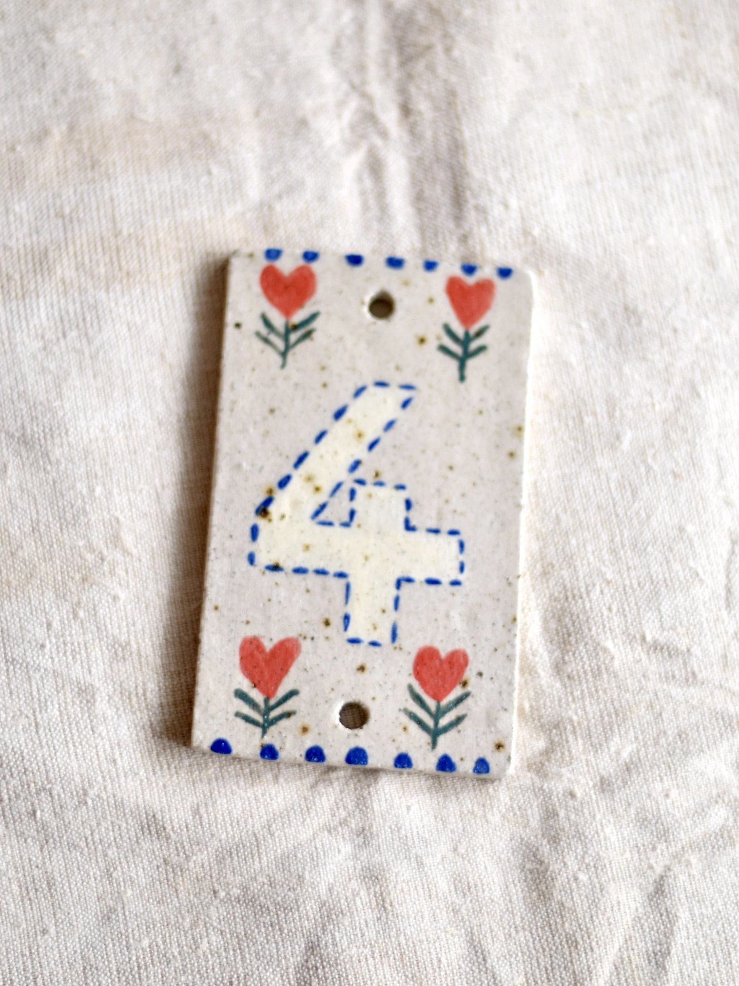 Handcrafted house number with red heart pattern . Add a touch of charm and cottage-core aesthetic to your doorstep. Simply choose the numbers you need. Every number is handpainted and has its own unique character and charm.
