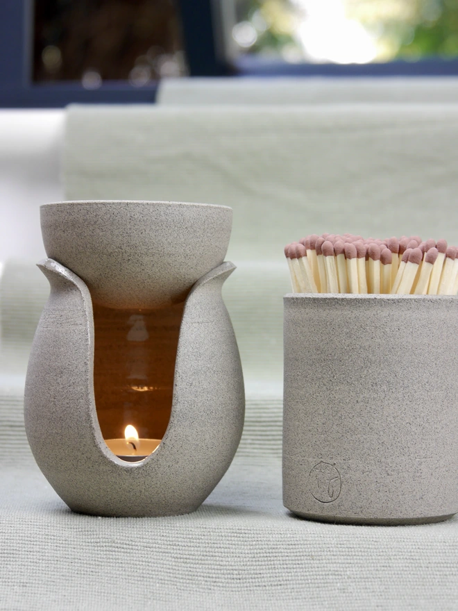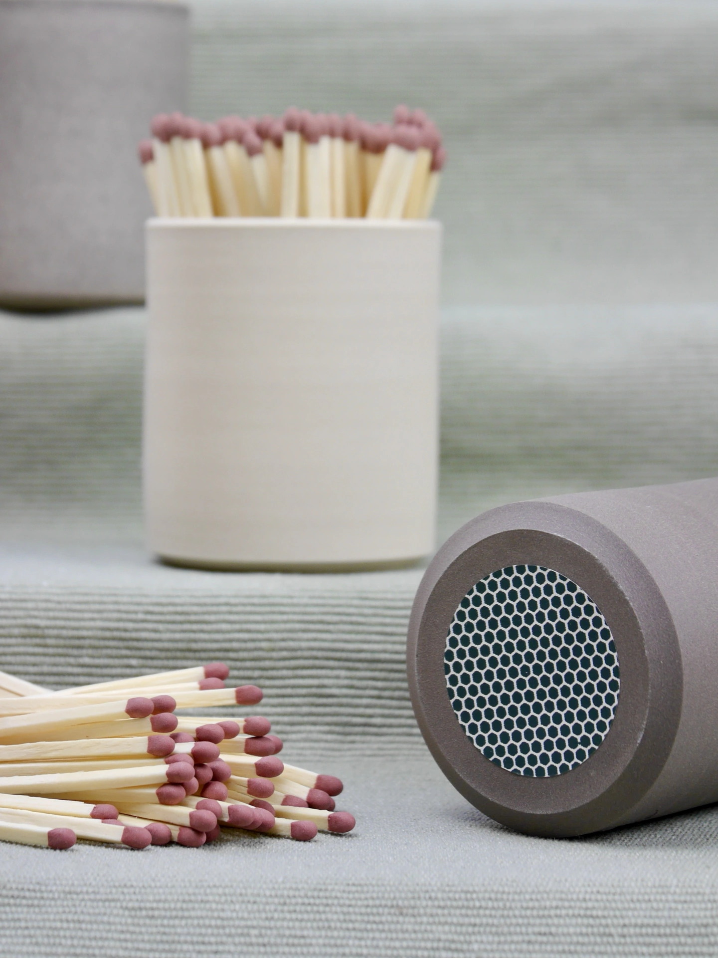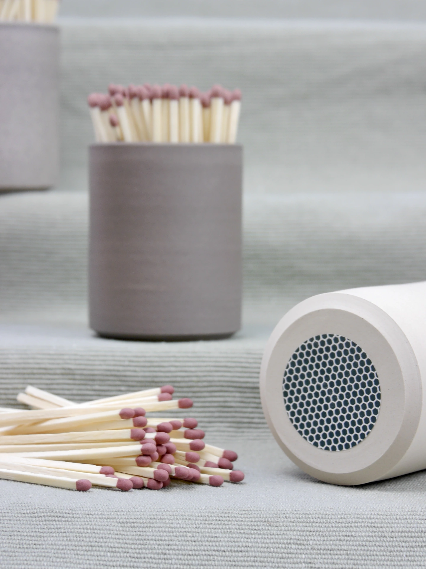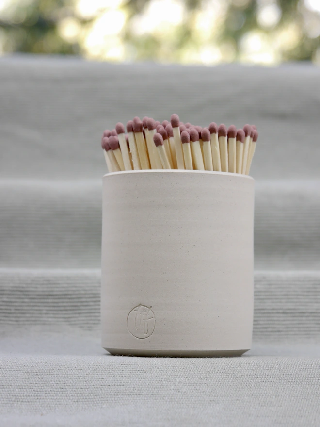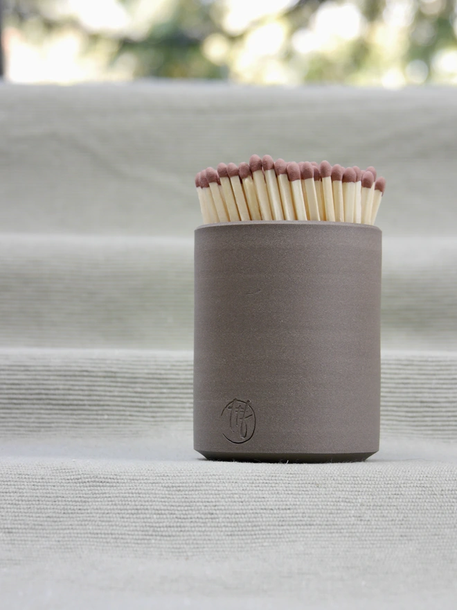 Thrown on the wheel using stoneware clay and finished with a clear glaze on the inside, this minimal match stick holder is the perfect accessory for any home.