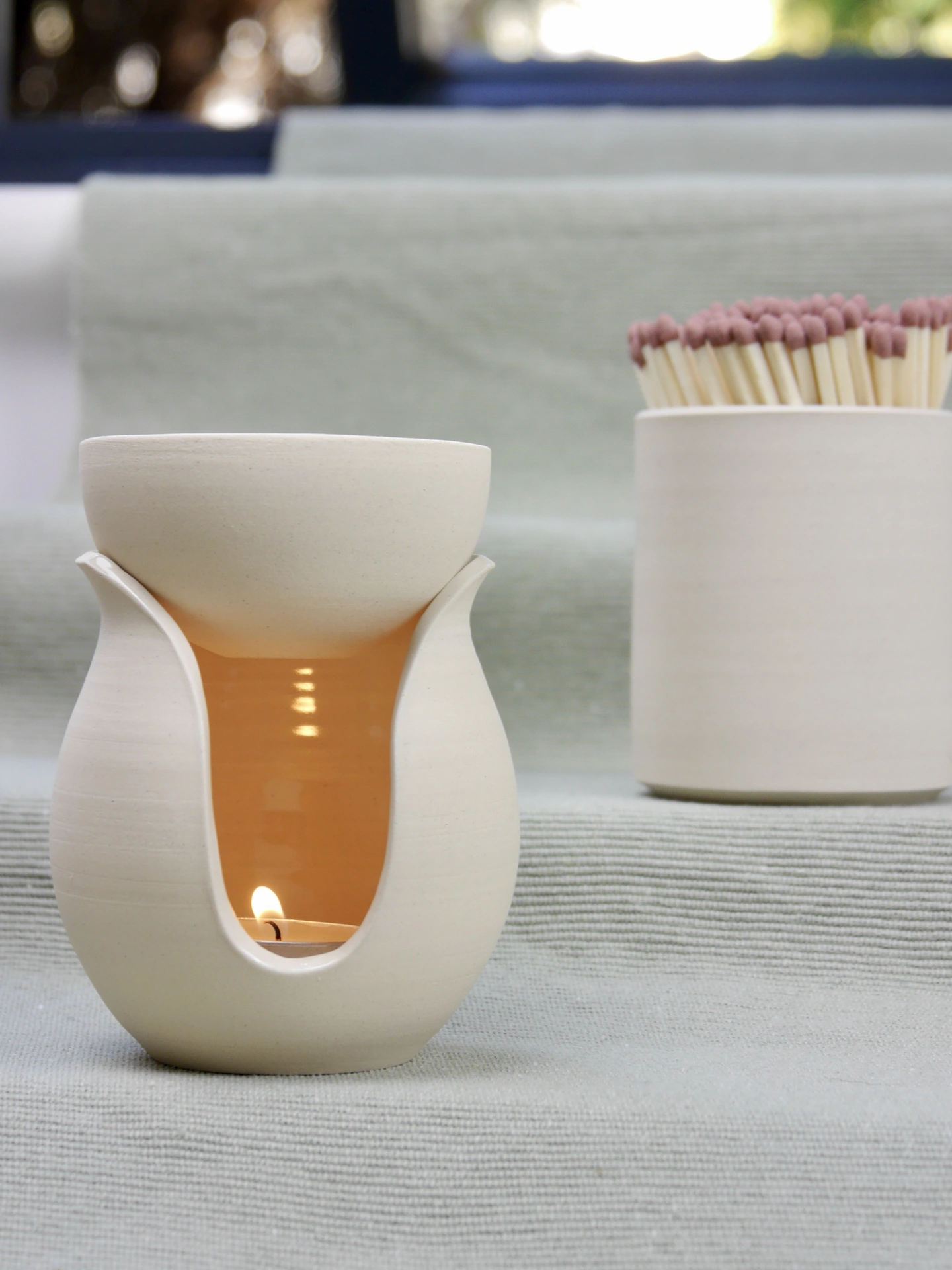 Thrown on the wheel using stoneware clay and finished with a clear glaze on the inside, this minimal match stick holder is the perfect accessory for any home...