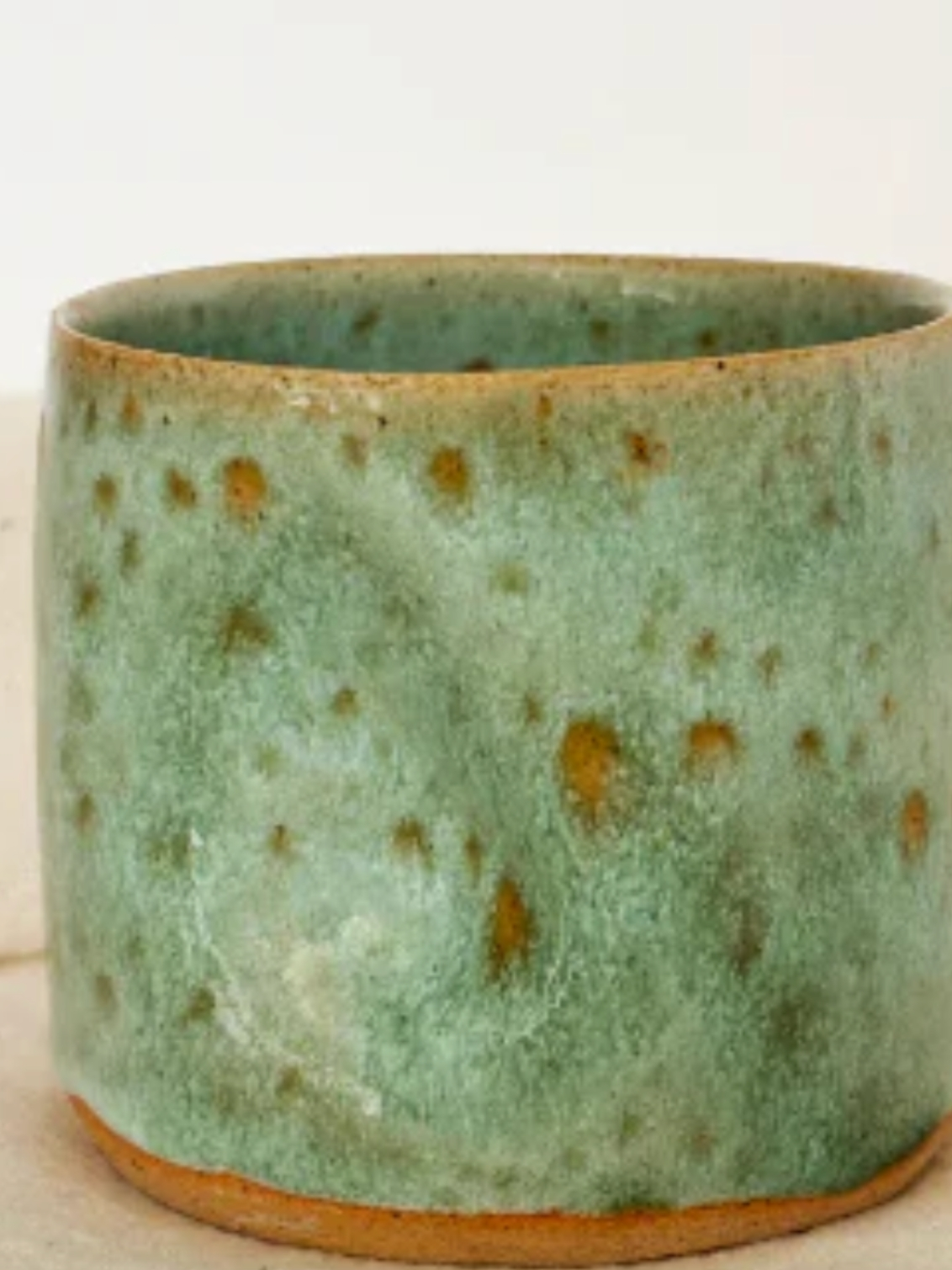 Handmade in Suffolk, rustic mug with a unique and interesting no-handle design, perfect for morning coffee.
