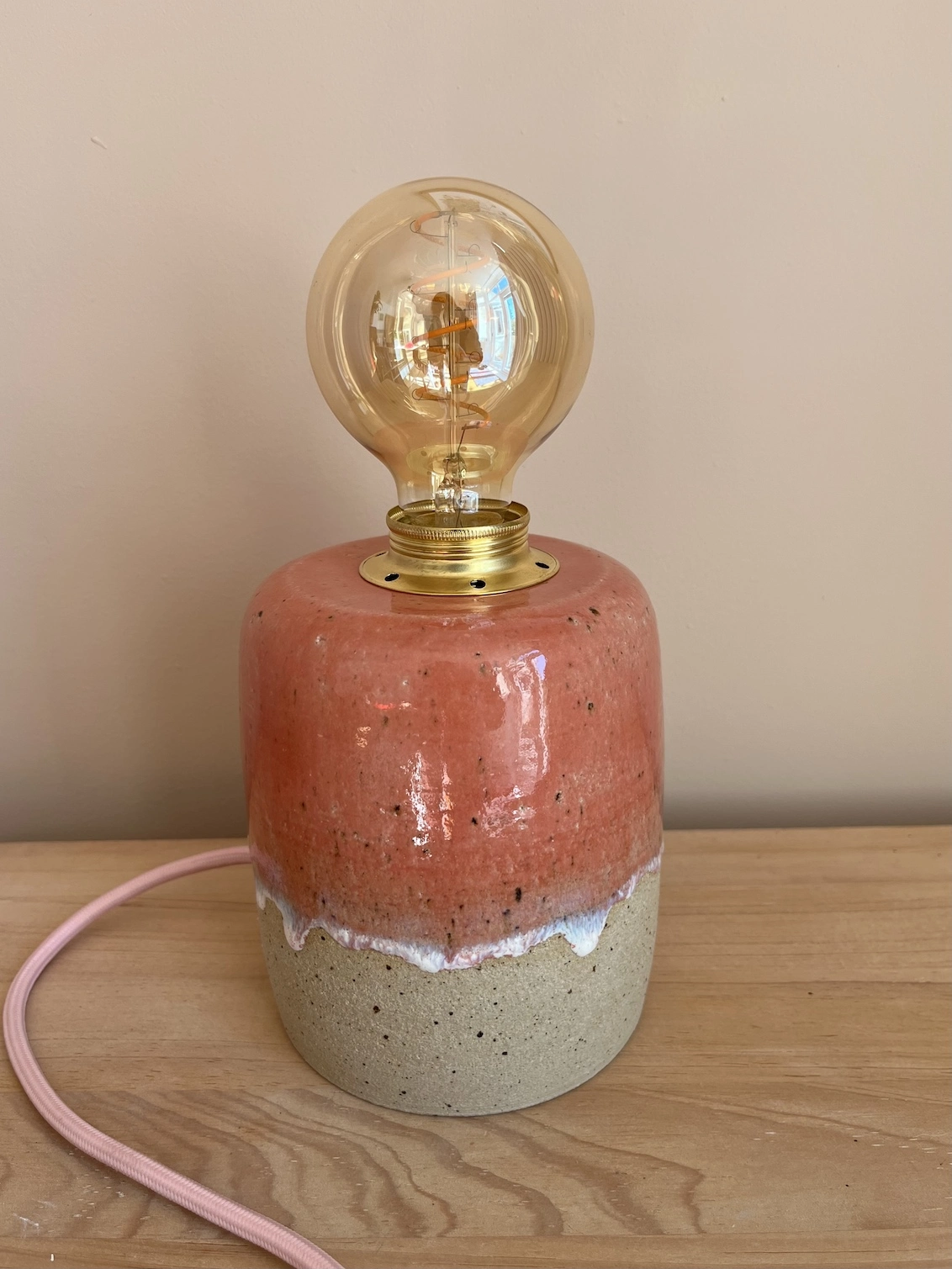 This lamp adds a lovely warm glow to any room at night and adds a pop of colour whilst it’s off during the day! It has been made by me in my home studio in Bristol. Each lamp is hand thrown on the wheel and therefore may vary slightly in size, shape and glaze finish, which makes it completely unique.