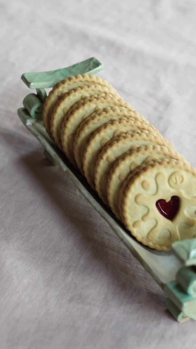Ceramic stoneware Biscuit Tray With Curly Feet