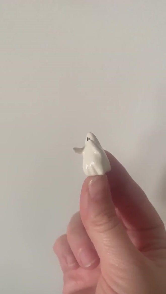 Each ghost is formed by hand with hand painted wee eyeballs then glazed.