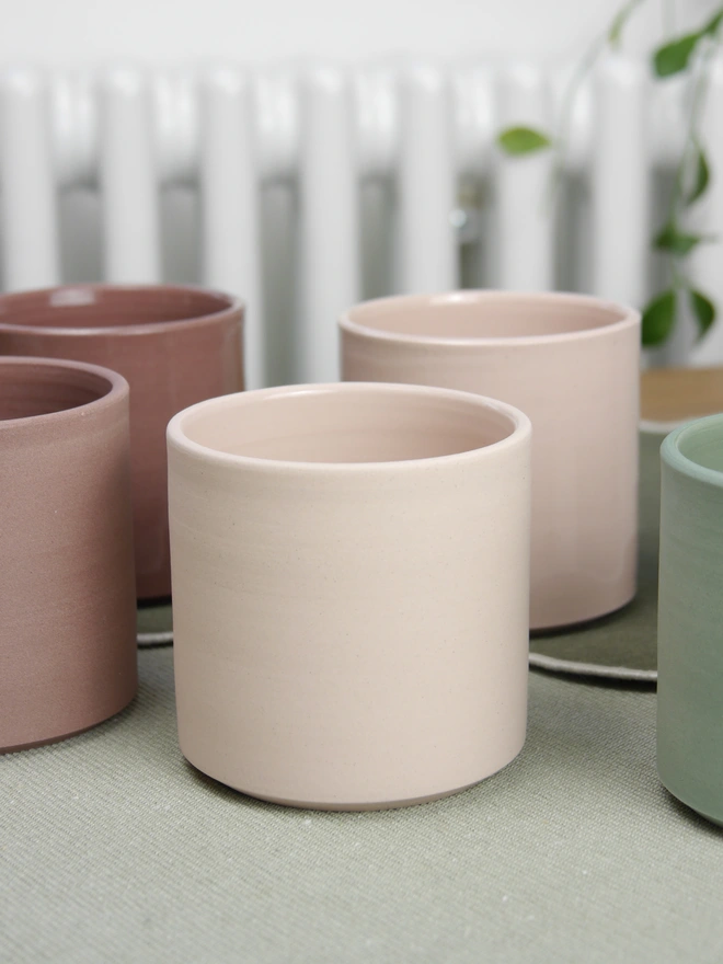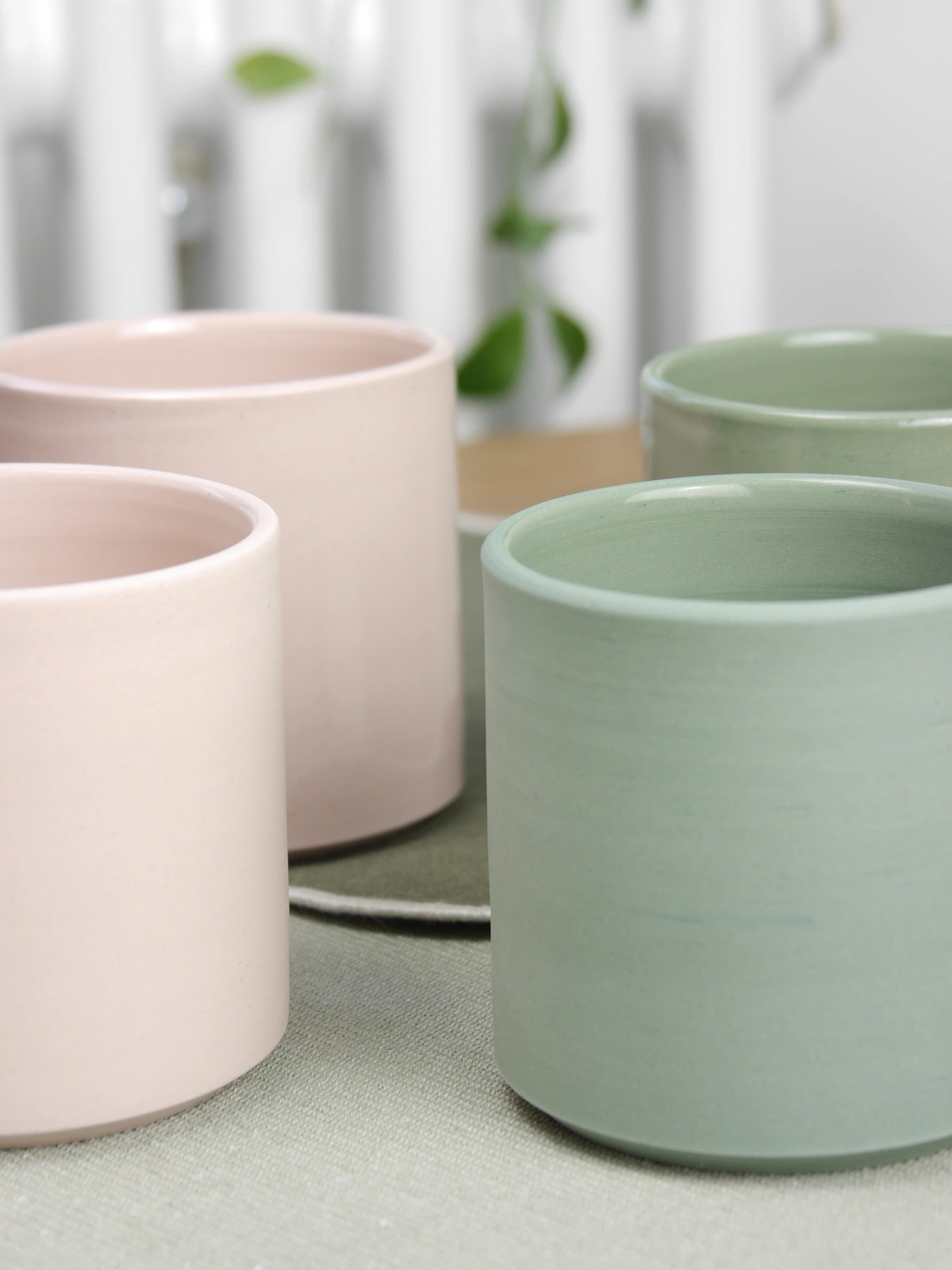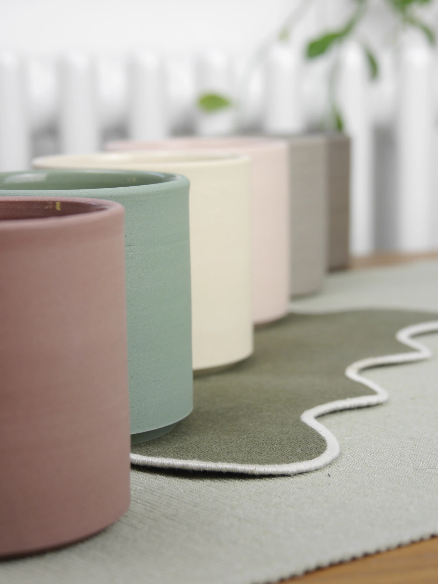 We use stains to colour the clay before throwing with it on the wheel, meaning that the tumbler is pigmented throughout
