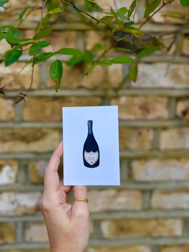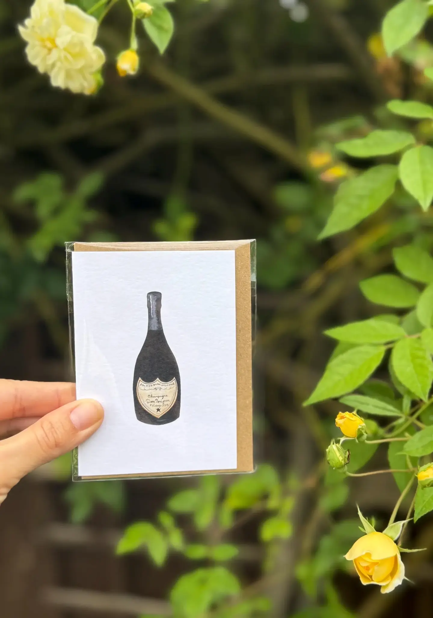 A champagne bottle watercolour mini card. Hand painted by me and professionally printed on delicately textured matte white 324 gsm luxury print paper.