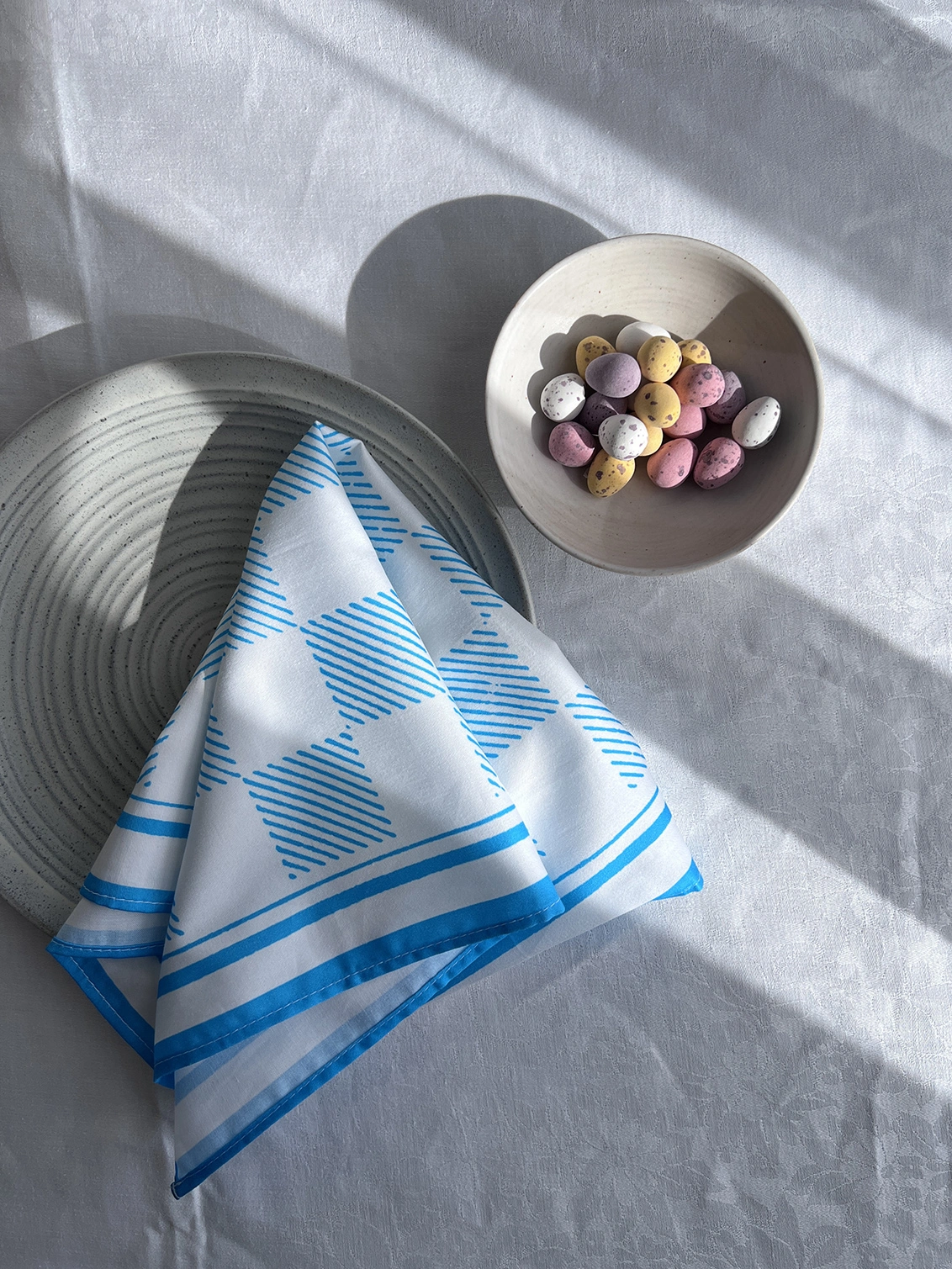 Checkerboard Draughts Board Game Blue Cotton Table Napkin