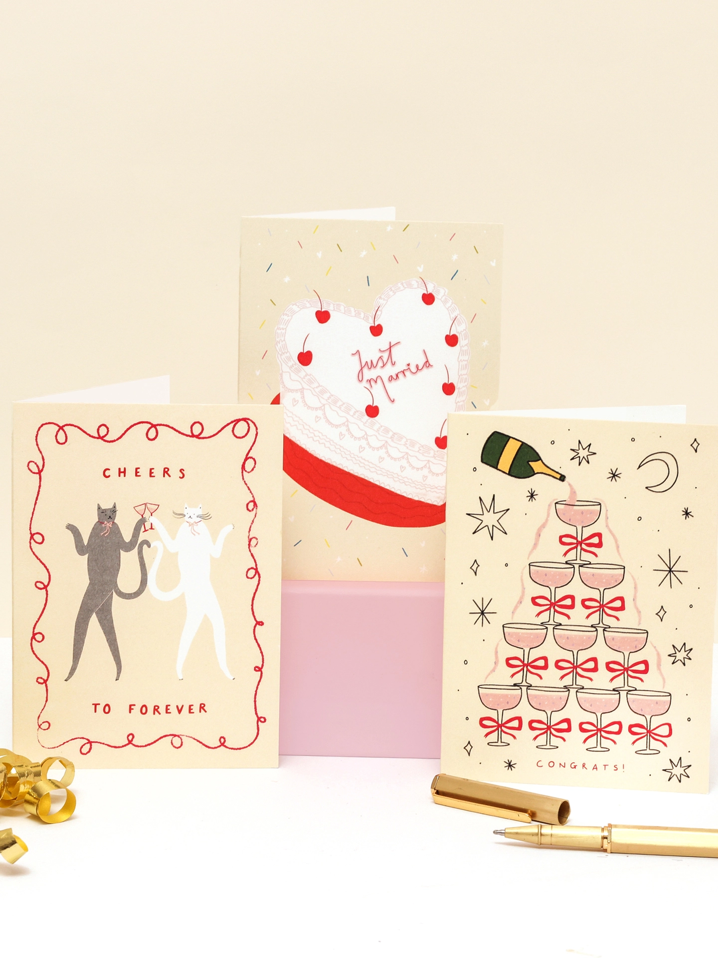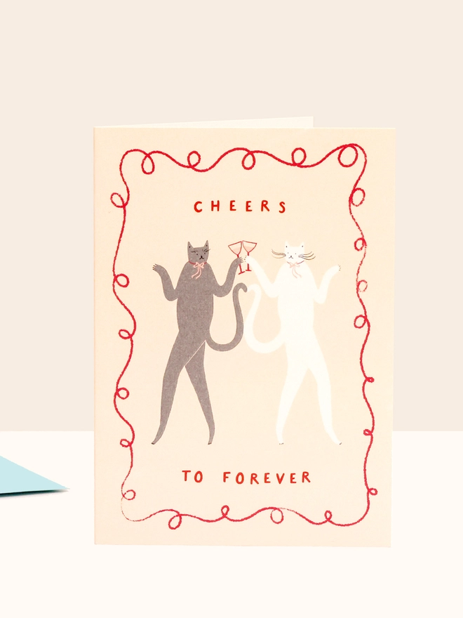 Cheers To Forever Cats Wedding Card | Congratulations Card