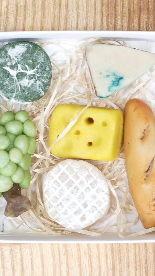 A perfect after dinner treat or a quirky gift for the Marzi-fan/cheese lover in your life! These gift boxes of cheese, with the usual accompaniments of bread and grapes, of course, are hand crafted using our own marzipan. Grapes are either green or black...