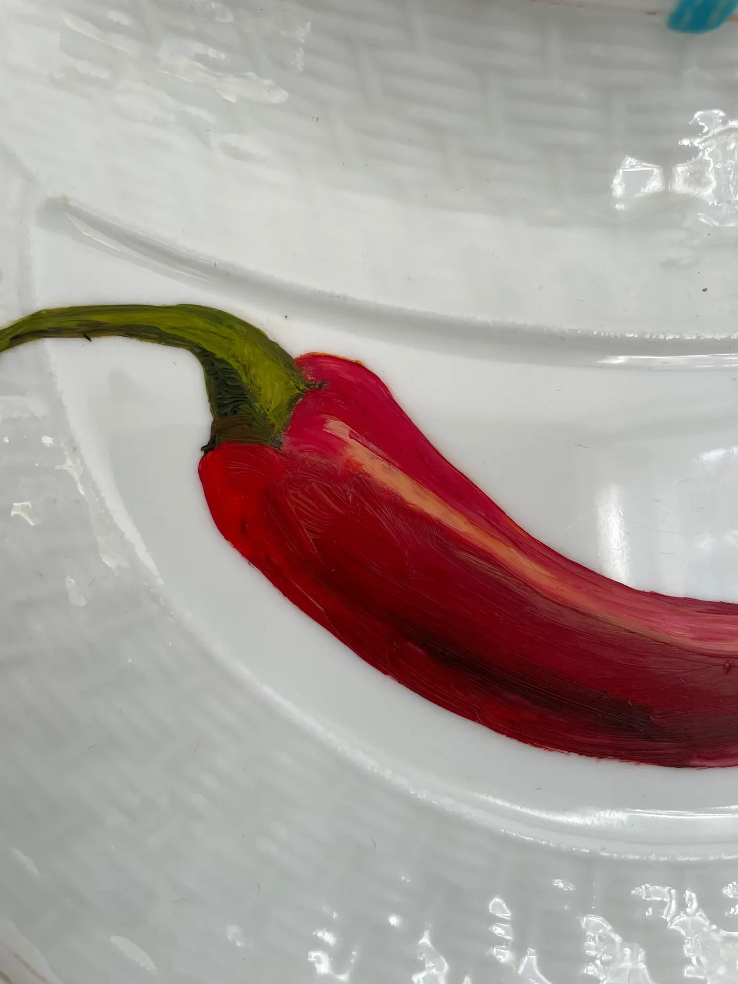 Chilli Oil Painting On An Antique Side Plate