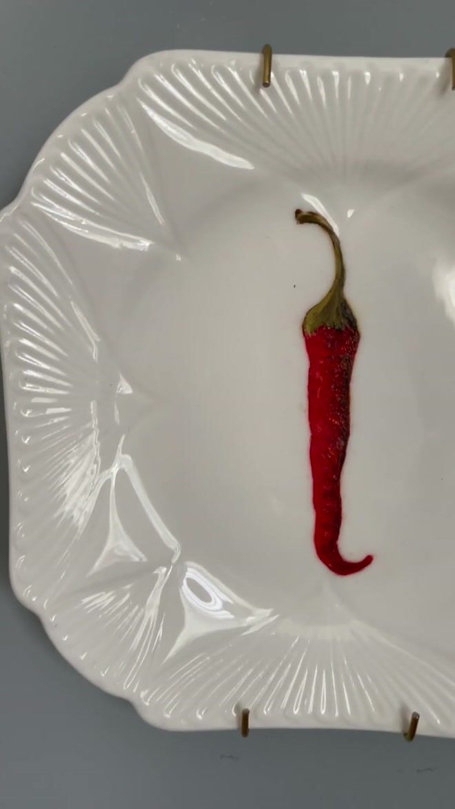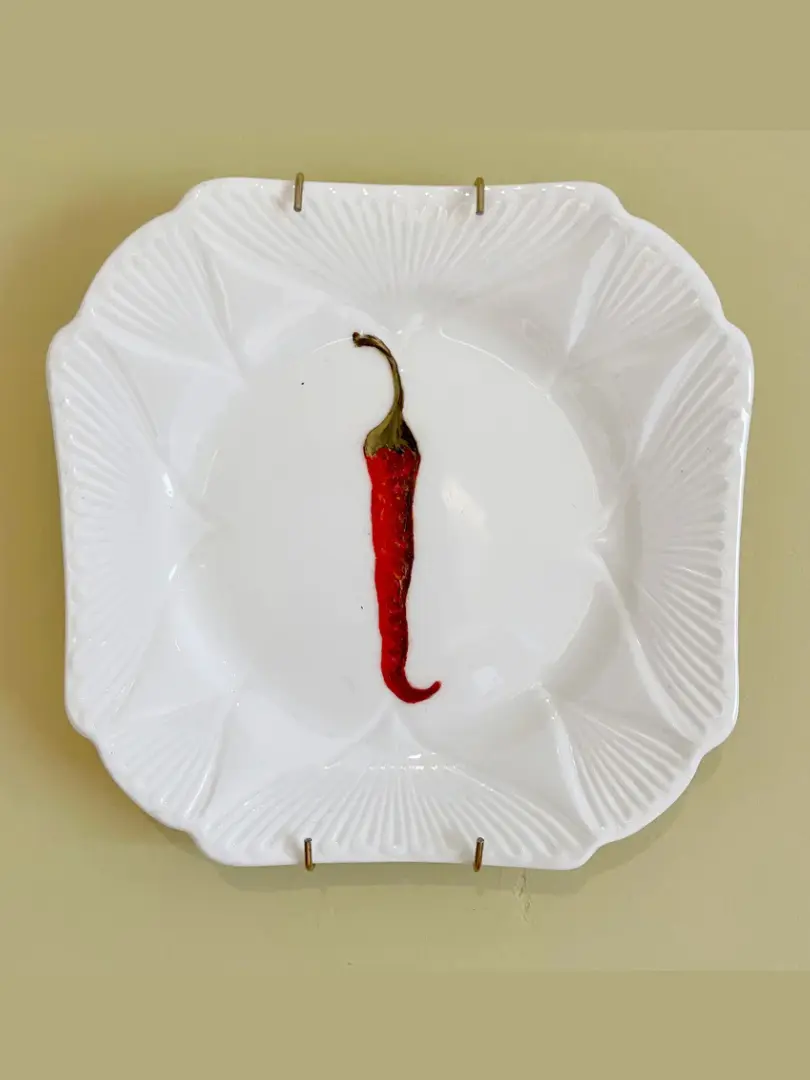 Chilli Oil Painting On Antique Tea Plate