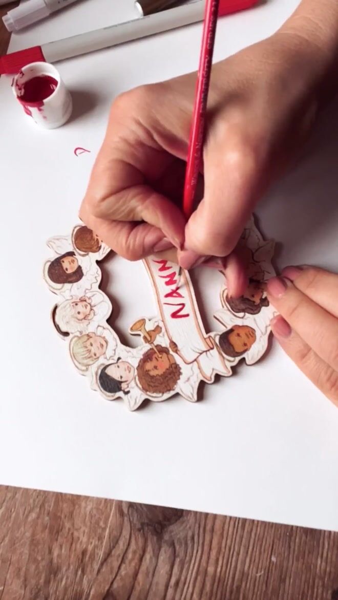 A beautifully printed wooden Christmas decoration featuring my original illustration 'Chorus of Angels'