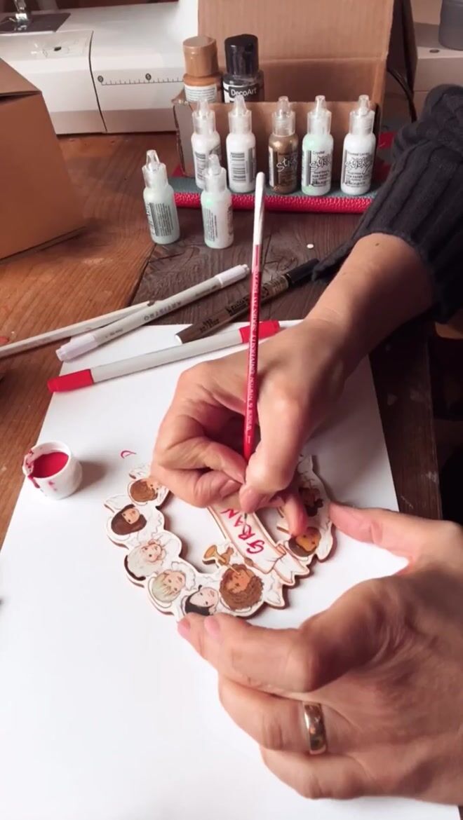 Printed and laser cut locally, personalised with your own word/s written on the angels scroll in paint pen and paint, then hand finished with gold painted halos