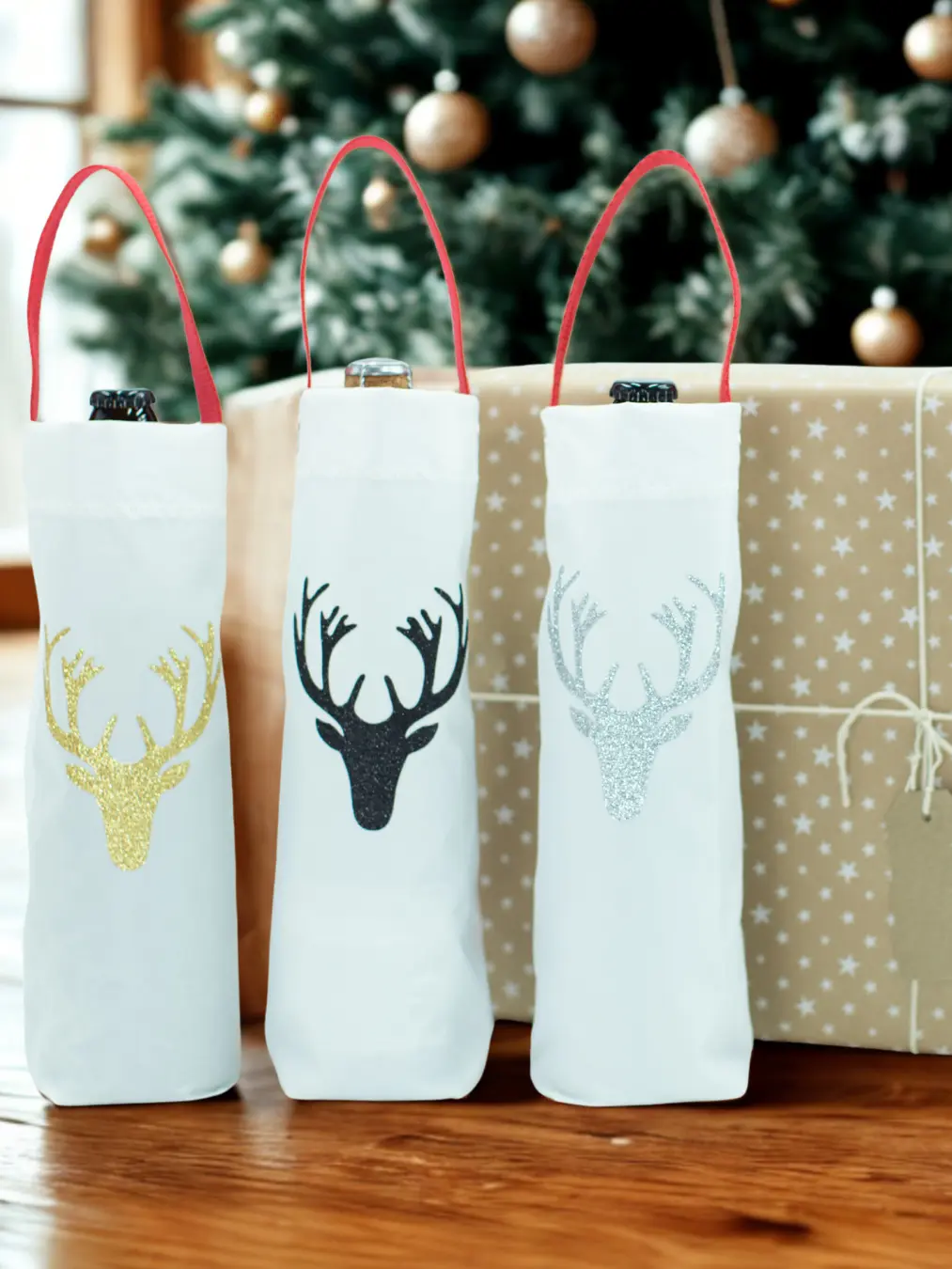 Add a touch of winter sparkle to your gifting with our Reindeer Christmas Bottle Gift Bag. Designed to fit a standard 75cl bottle, it’s the perfect way to present wine, champagne, or spirits in seasonal style. A charming and practical way to carry a bottle to any Christmas celebration!