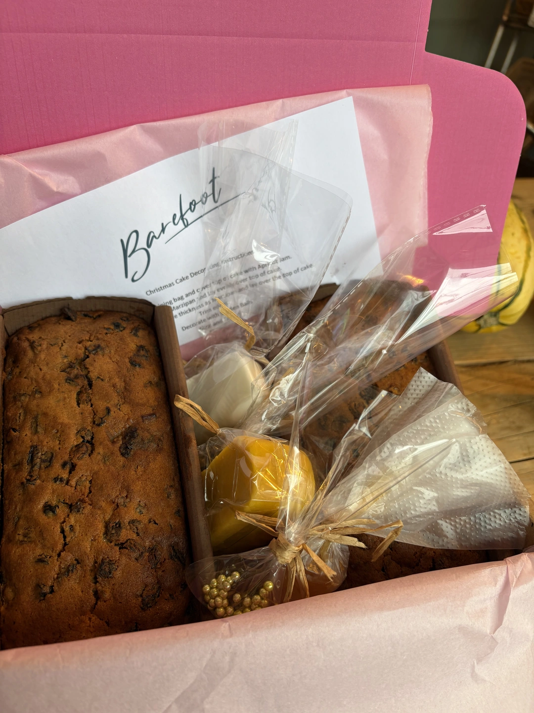 Our Moist and fruity Christmas Cake in perfect family sized loaves. Delivered with all you need to decorate including Marzipan, Fondant Icing, Apricot jam, decorations.
