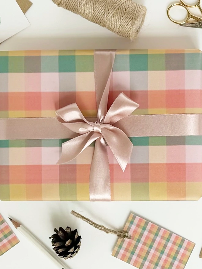 The gift wrap and the tags are printed on luxurious matte paper. The gift wrap is 120gsm and the tags are 325gsm.