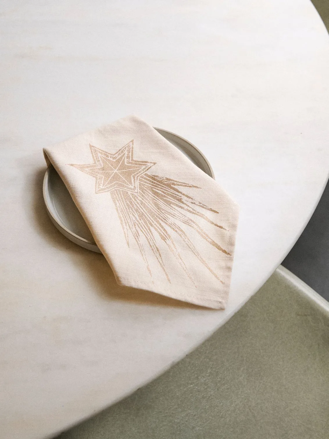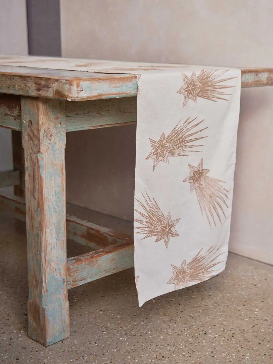 A festive table runner & napkin set that brings a quiet elegance of Christmas to the table. Screen printed in London with golden stars, they’re made for candlelit feasts, the clink of glasses, and the joy of gathering together.