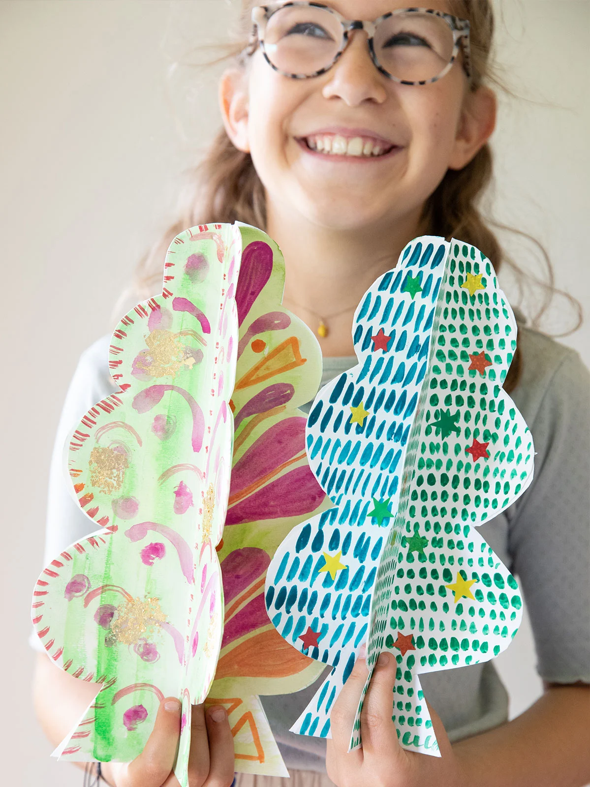 • Plenty of quality art materials for your child: Giotto water-colours, Das clay, a pipette, coloured tape, mini pompoms, tinsel wool, embroidery thread, gold leaf, large paper, templates and water-colour cards