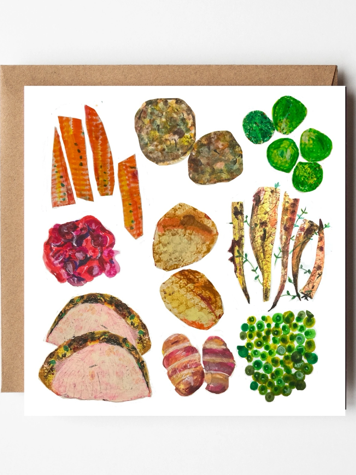 Whose waiting for a Christmas lunch brimming with mouth watering vegetables, turkey, pigs in blankets, stuffing and cranberry sauce. A custom product produced from mixed-media artwork.